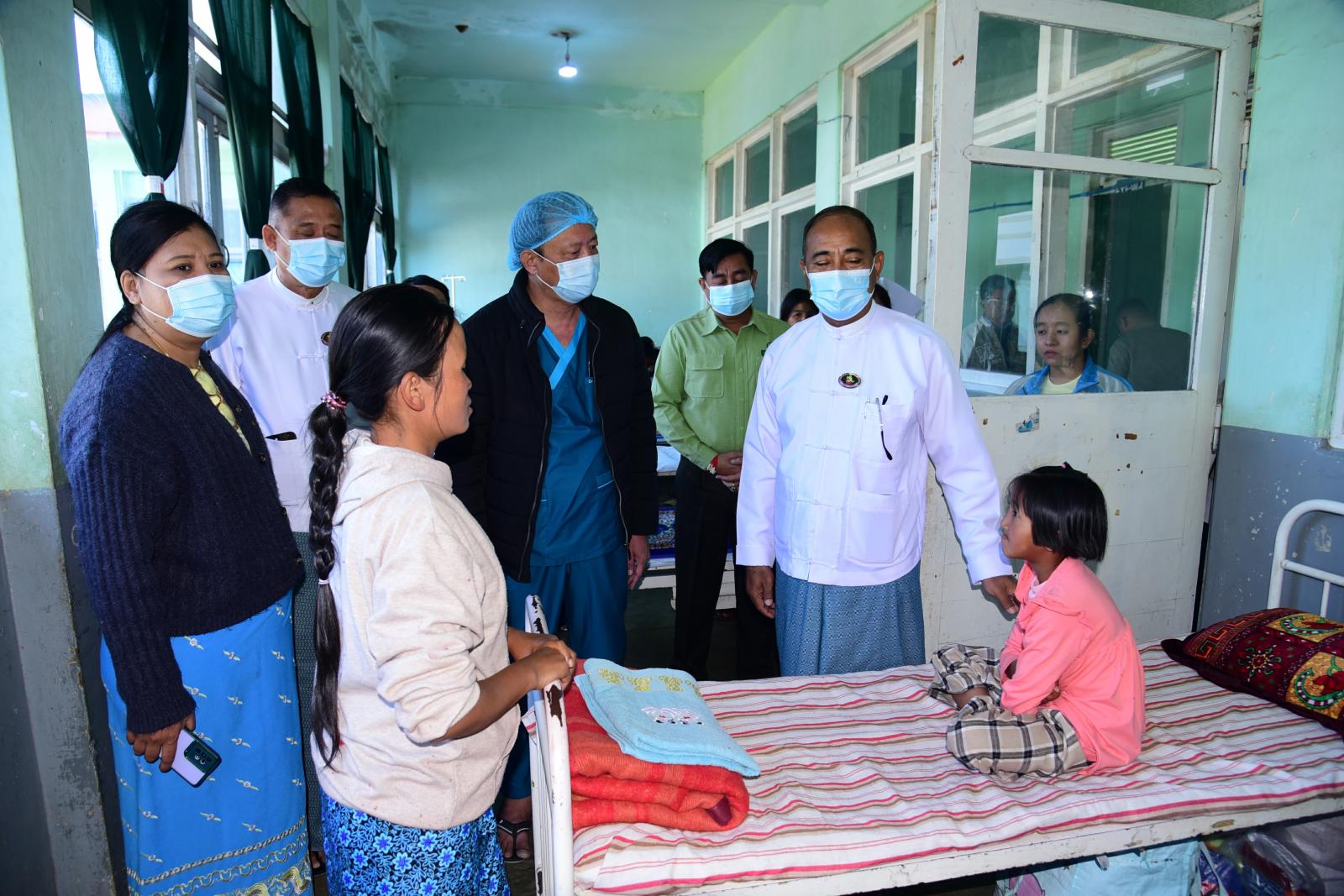 ထို့နောက် ပြည်နယ်ဝန်ကြီးချုပ်နှင့်အဖွဲ့သည် ခွဲစိတ်ကုသဆောင်သို့သွားရောက်၍ ပါမောက္ခ၊ အထူးကုဆရာဝန်ကြီးများမှ မွေးရာပါနှုတ်ခမ်းကွဲ၊ အာခေါင်ကွဲကလေးလူနာများအား ခွဲစိတ် ကုသပေးနေမှုကို ကြည့်ရှုကြကြောင်း သိရသည်။