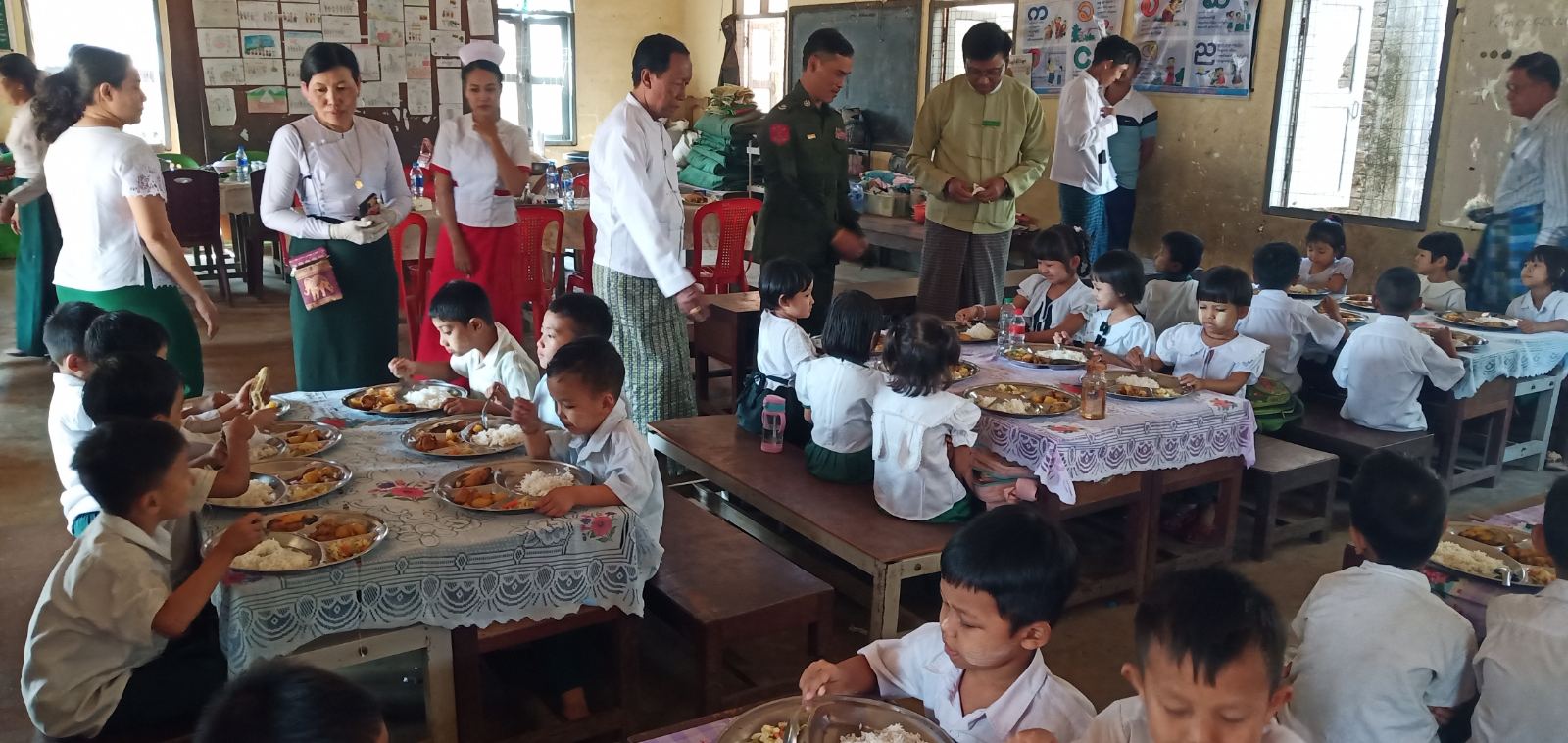 အဆိုပါ အာဟာရကျွေးမွေးခြင်းကို ယမန်နေ့နံနက် ၉ နာရီတွင် အခြေခံပညာအထက်တန်းကျောင်း(ရွှေဥဩ)ကျောင်းနှင့် အခြေခံပညာမူလွန်(ဘူတာ)ကျောင်းရှိ KG ကျောင်းသားကျောင်းသူများအား ကျွေးမွေးနေမှုကို ကျိုက်ထိုမြို့နယ်စီမံအုပ်ချုပ်ရေးအဖွဲ့ဥက္ကဋ္ဌ ဦးတင့်လွင်နှင့်အဖွဲ့ဝင်ဗိုလ်မှူးပြည်ထွန်း၊ မြို့နယ်ပညာရေးမှူး ဦးမောင်ညို၊ ကျန်းမာရေးမှူးအဆင့်(၁)ဦးထွန်းညီညီ၊ ကျန်းမာရေးမှူးအဆင့်(၂)ဦးအောင်မိုးဝင်းတို့က ကြည့်ရှုအားပေးခဲ့ကြပြီး ဆက်လက်၍ ကျောင်းသား၊ ကျောင်းသူ(၃၀၂၄)ဦးအား တစ်ဦးလျှင်(၁၅၀၀)ကျပ်နှုန်းဖြင့် (၃)ရက်ကြာကျွေးမွေးသွားမည်ဖြစ်ကြောင်း သိရသည်။