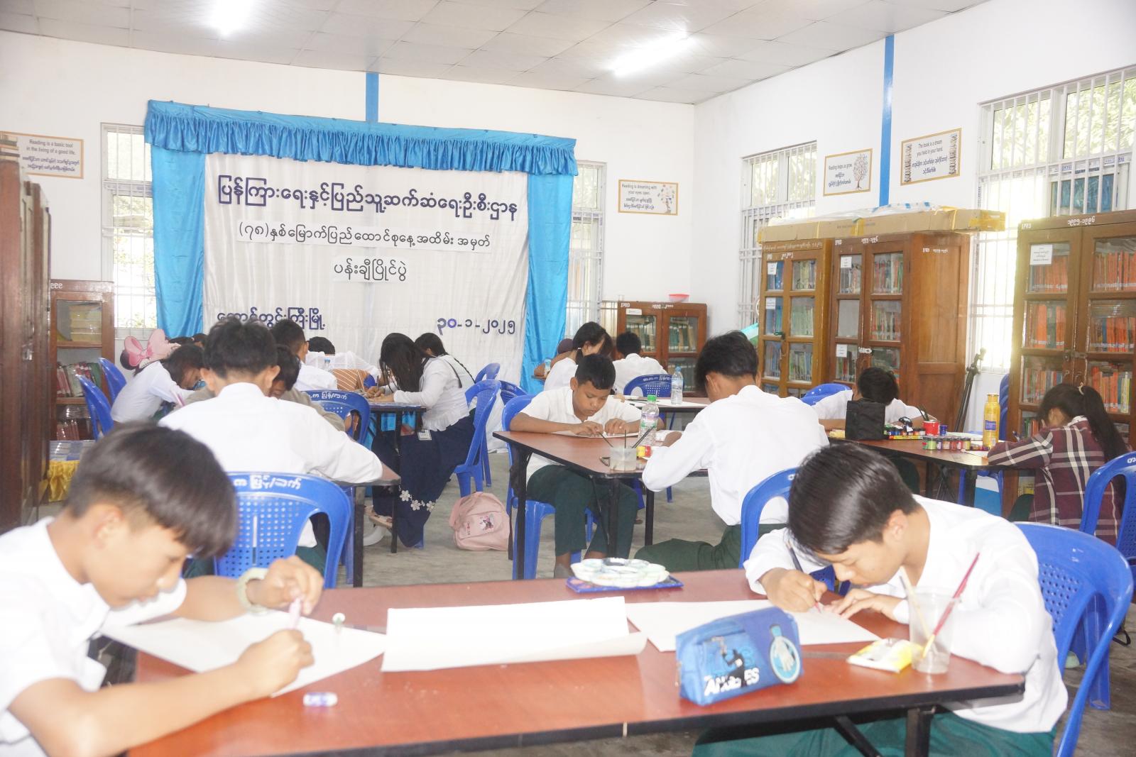 ထို့နောက် ပြိုင်ပွဲဝင်ကျောင်းသား/ကျောင်းသူများက ပြန်ကြားရေးနှင့်ပြည်သူ့ဆက်ဆံရေးဦးစီးဌာနမှ ခင်းကျင်းပြသထားသည့် ပင်လုံစာချုပ်ချုပ်ဆိုရာတွင်ပါဝင်ကြသူများ၊ ပင်လုံစာချုပ် ချုပ်ဆိုရာတွင် ပါဝင်ကြသည့် တိုင်းရင်းသားကိုယ်စားလှယ်များ၏ ကိုယ်ရေးအကျဥ်းများ၊ လွတ်လပ်ရေးနေ့နှင့်အမျိုးသားနေ့ အထိမ်းအမှတ်ပြိုင်ပွဲဝင် ပန်းချီလက်ရာနံရံကပ်စာစောင်များကို စိတ်ပါဝင်စားစွာ ကြည်ရှုခဲ့ကြောင်း သိရသည်။