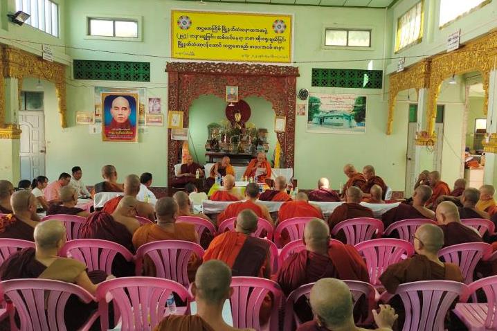 ဆက်လက်ပြီး လစ်လပ်သွားသည့် မြို့နယ်သံဃာဝန်ဆာင်အဖွဲ့တွင် ပြန်လည်ဖွဲ့စည်းနိုင်ရေး မူလသတ်မှတ်ထားသည့် သက်ဆိုင်ရာနယ်မြေအလိုက် ဆရာတော်ကြီးများ၏ အမည်စာရင်းများကို အစည်းအဝေး တက်ရောက်လာသည့် ဆရာတော်များက တင်သွင်းခဲ့ပြီး သဘာပတိဆရာတော်က နိဂုံးချုပ်ဩဝါဒကထာ မြွက်ကြားခဲ့ပြီး အစည်းအဝေးအား ဗုဒ္ဓသာသနံစိရံတိဌတု သုံးကြိမ်းရွတ်ဆို၍ ရုပ်သိမ်းခဲ့ကြောင်း သိရသည်။