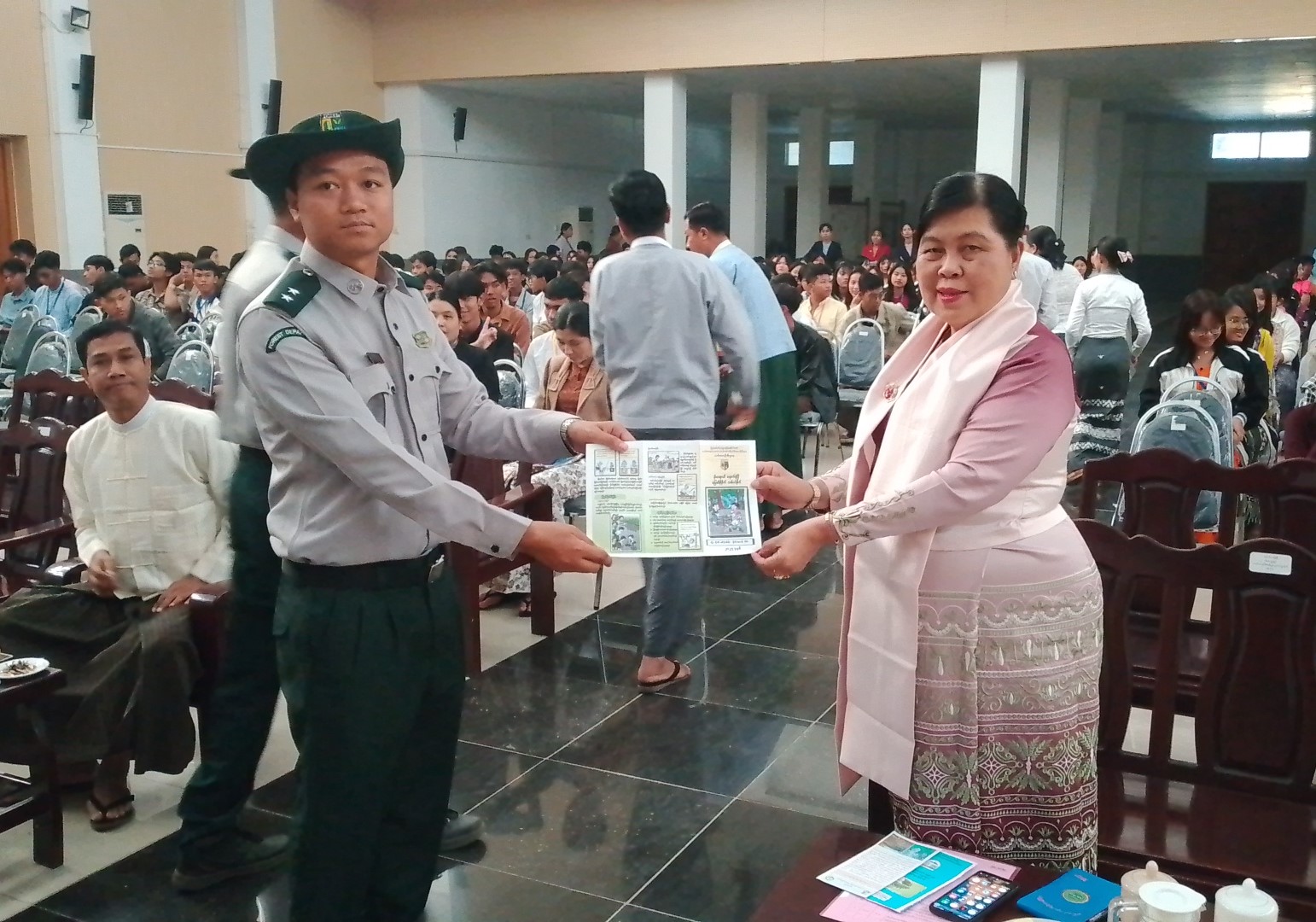 ဟောပြောပွဲတွင် သမဝါယမနှင့်စီမံခန့်ခွဲမှုပညာတ္ကသိုလ်(စစ်ကိုင်း)ပါမောက္ခချုပ် ဒေါက်တာ မို့မို့ရီက အမှာစကားပြောကြားပြီး ခရိုင်ပတ်ဝန်းကျင်ထိန်းသိမ်းရေးဦးစီးဌာန၊ ခရိုင်ဦးစီးမှူး ဒေါ်မိမိကျော် က “ပတ်ဝန်းကျင်ထိန်းသိမ်းရေးနှင့်လူငယ်ကဏ္ဍ”၊ ခေါင်းစဉ်ဖြင့်လည်းကောင်း မြို့နယ်သစ်တောဦးစီးဌာန၊ မြို့နယ်ဦးစီးမှူးဦးရဲထက်အောင် (၁) က “သစ်တောထိန်းသိမ်းရေးနှင့် ရေသယံဇာတ ထိန်းသိမ်းရေးအကြောင်း ခေါင်းစဉ်ဖြင့်လည်းကောင်း၊ အပူပိုင်းဒေသစိမ်းလန်းစိုပြည်ရေးဦးစီးဌာန၊ မြို့နယ်ဦးစီးမှူး ဦးမျိုးမင်းဇော်က “ သဲကန္တရဖြစ်ထွန်းမှုတိုက်ဖျက်ရေးနှင့် ရာသီဥတုဖောက်ပြန်ယိုယွင်းမှု ဟန့်တားလျှာ့ချရေး” ခေါင်းစဉ်ဖြင့်လည်းကောင်း၊ ခရိုင်ပတ်ဝန်းကျင်ထိန်းသိမ်းရေးဦးစီးဌာနမှ ဦးစီးအရာရှိ ဒေါ်ထက်ယမင်းအောင်က “မီးခိုးမြူငွေ့လျော့ချရေး အားလုံးပူးပေါင်းပါဝင်ပေး” ခေါင်းစဉ်များဖြင့်လည်းကောင်း အသီးသီးဟောပြောပေးခဲ့ကြပြီး အသိပညာပေးဟောပြောပေးခဲ့ကြသည့် ဌာနဆိုင်ရာများအား သမဝါယမနှင့်စီမံခန့်ခွဲမှုပညာတက္ကသိုလ် (စစ်ကိုင်း) ပါမောက္ခချုပ်က ဂုဏ်ပြုမှတ်တမ်းလွှာများ ပေးအပ်ခဲ့သည်။