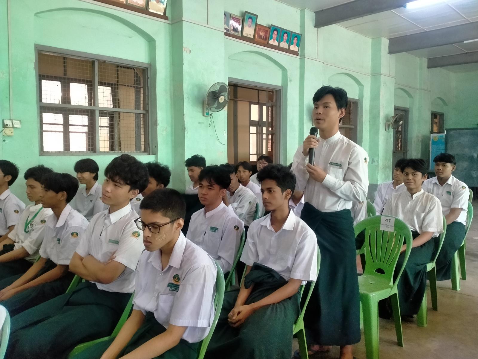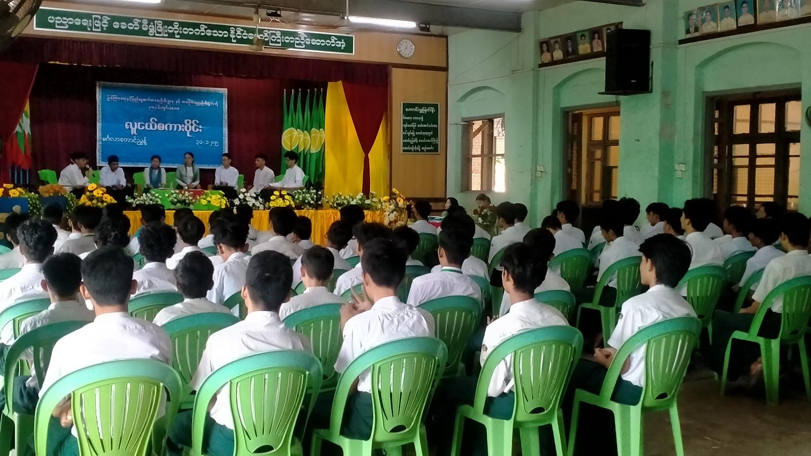 ကျောင်းသား၊ ကျောင်းသူလူငယ်လူရွယ်လေးများအနေဖြင့် ဗလငါးတန်ဖွံ့ဖြိုးတိုးတက်စေရေးအတွက် စိတ်အားထက်သန်စွာ ကြိုးပမ်းဆောင်ရွက်နိုင်ကြစေရန်နှင့် စကားပြောအတတ် ပညာကျွမ်းကျင်စွာတတ်မြောက်ပြီး လူအများရှေ့တွင် ရဲဝံ့စွာစကားပြောဆိုတတ်စေရန် ရည်ရွယ်၍ ပြန်ကြားရေးနှင့်ပြည်သူ့ဆက်ဆံရေးဦးစီးဌာနနှင့် အခြေခံပညာဦးစီးဌာနတို့ ပူးပေါင်းကျင်းပသော လူငယ်စကားဝိုင်း ဆွေးနွေးပွဲကို ယနေ့နံနက် ၉ နာရီခွဲအချိန်က အမှတ်(၄) အခြေခံပညာအထက်တန်းကျောင်း၊ မင်္ဂလာသီရိခန်းမတွင် ကျင်းပပြုလုပ်ခဲ့သည်။