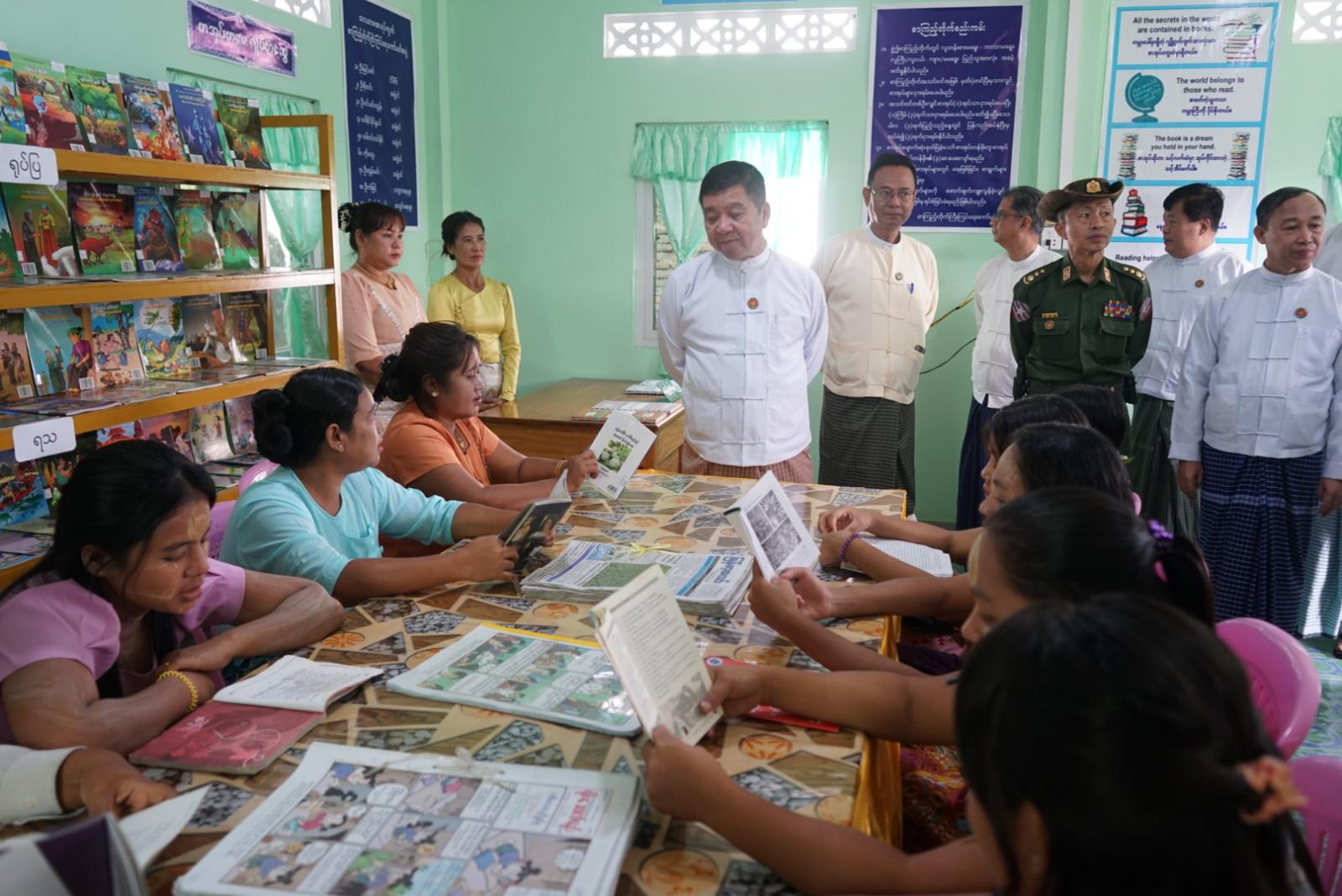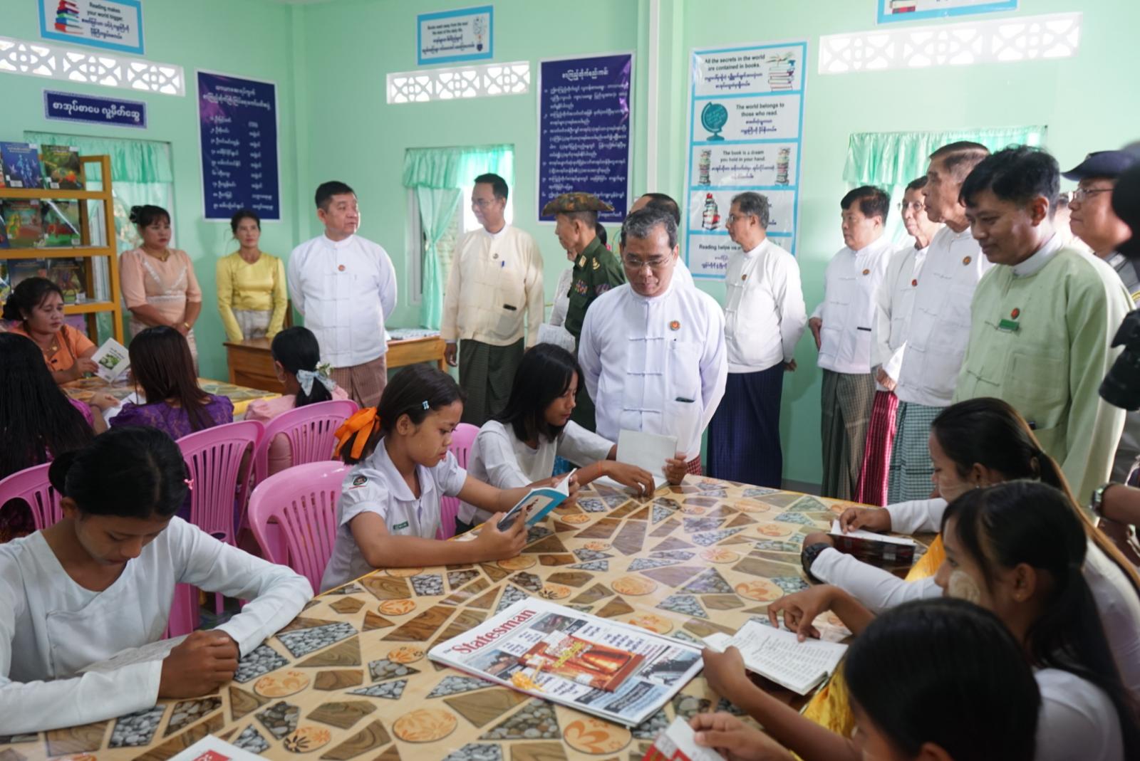 ထို့နောက် ပြည်နယ်ဝန်ကြီးချုပ်နှင့် တာဝန်ရှိသူများက“လင်းရောင်ခြည်” စာကြည့်တိုက် ကမ္ပည်းမော်ကွန်းအား အမွှေးနံ့သာရည်များ ပက်ဖျန်းခဲ့ပြီး စာကြည့်တိုက်အတွင်း သုတ၊ ရသစာအုပ်စာစောင်များ၊ ပရိဘောဂပစ္စည်းများ၊ ရပ်ကွက်ပြည်သူများနှင့် ကျောင်းသား၊ ကျောင်းသူများက စာအုပ်စာပေလေ့လာ ဖတ်ရှုနေမှုတို့ကို လှည့်လည်ကြည့်ရှုအားပေးခဲ့သည်။