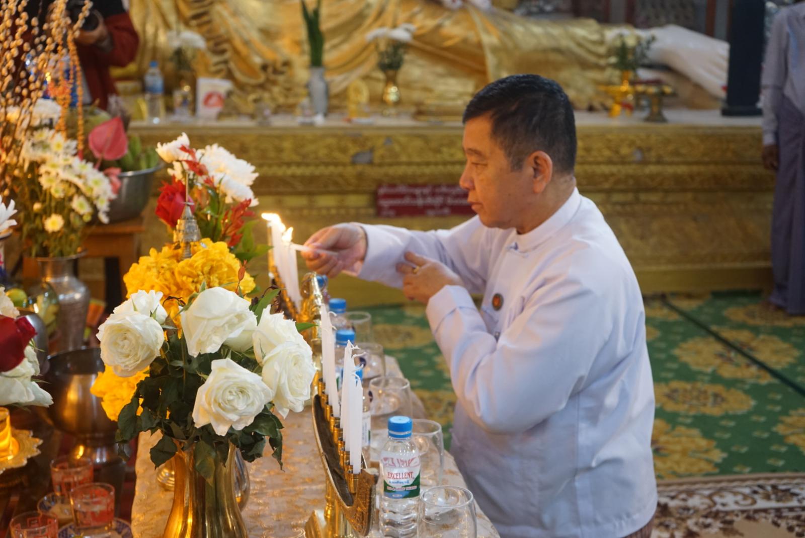 ထို့နောက် ပြည်နယ်ဝန်ကြီးချုပ်က စေတီတော်မြတ်ကြီးကို ရွှေသင်္ကန်နှင့် ရွှေစင်ရွှေပြား ကပ်လှူပူဇော်ခဲ့ပြီး စိန်ဖူးတော်၊ ငှက်မြတ်နားတော်အသစ်ပူဇော်ခြင်းနှင့် ဘက်စုံပြုပြင်နိုင်ရေး ပေါင်းစပ်ညှိနှိုင်း ကုသိုလ်ယူဆောင်ရွက်ပေးခဲ့သည်။