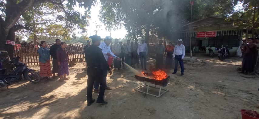 ထိုသို့ ဌာနဆိုင်ရာ ရုံးအဆောက်အဦများ၊ မီးဘေးလုံခြုံရေးအတွက် စစ်ဆေးအကြံပေးရာတွင် လျှပ်စစ်မီးများသုံးစွဲရာ၌ ခံနိုင်ဝန်ထက်ပိုမိုအသုံးမပြုရေး၊ ဟောင်းနွမ်းသောလျှပ်စစ်မီးကြိုး အသစ်လဲလှယ်အသုံးပြုရေး၊ လျှပ်စစ်အသုံးပြုရာတွင် သတိထားရမည့်အချက်များ၊ ဆေးလိပ်သောက်ရာတွင် သတိပြုဆင်ခြင်သင့်သည့်အချက်များ၊ ဖယောင်းတိုင်နှင့် လောင်စာဆီအသုံးပြုရာတွင် သတိပြုသင့်သည့်အချက်များ၊ အမှိုက်မီးရှို့ရာတွင် လိုက်နာရမည့်အချက်များအား ဝန်ထမ်းများနှင့် မိသားစုဝင်များ သိရှိလိုက်နာဆောင်ရွက်သွားကြရန်၊ မီးချိတ်၊ မီးကပ်၊ ရေပုံး၊ သဲပုံးများနှင့်မီးသတ်ဆေးဘူးများထားရှိစေရေးနှင့် မီးဘေးအန္တရာယ် ကျရောက်လာပါက မြို့နယ်မီးသတ်ဦးစီးဌာနသို့ အချိန်မီဆက်သွယ်အကြောင်းကြားပေးရန် အသိပညာဟောပြောပေးခဲ့ကြောင်းနှင့် DCP မီးသတ်ဆေးဘူးဖြင့် မီးငြှိမ်းသတ်ခြင်း လက်တွေ့ သရုပ်ပြသခြင်းကို မြို့နယ်သန္ဓေတပ်ဖွဲ့ဝင်များ၊ ဝန်ထမ်းများနှင့် မိသားစုဝင်များပါဝင်သရုပ်ပြသခဲ့ပြီး၊ မီးသတ်ယာဉ်ဖြင့်ရေစို ဇာတ်တိုက်လေ့ကျင့်ခြင်းများ ဆောင်ရွက်ခဲ့ကြောင်း မြို့နယ်မီးသတ်ဦးစီးဌာနမှ ဦးစီးအရာရှိ ဦးအောင်ကျော်မြင့်ထံမှ သိရသည်။