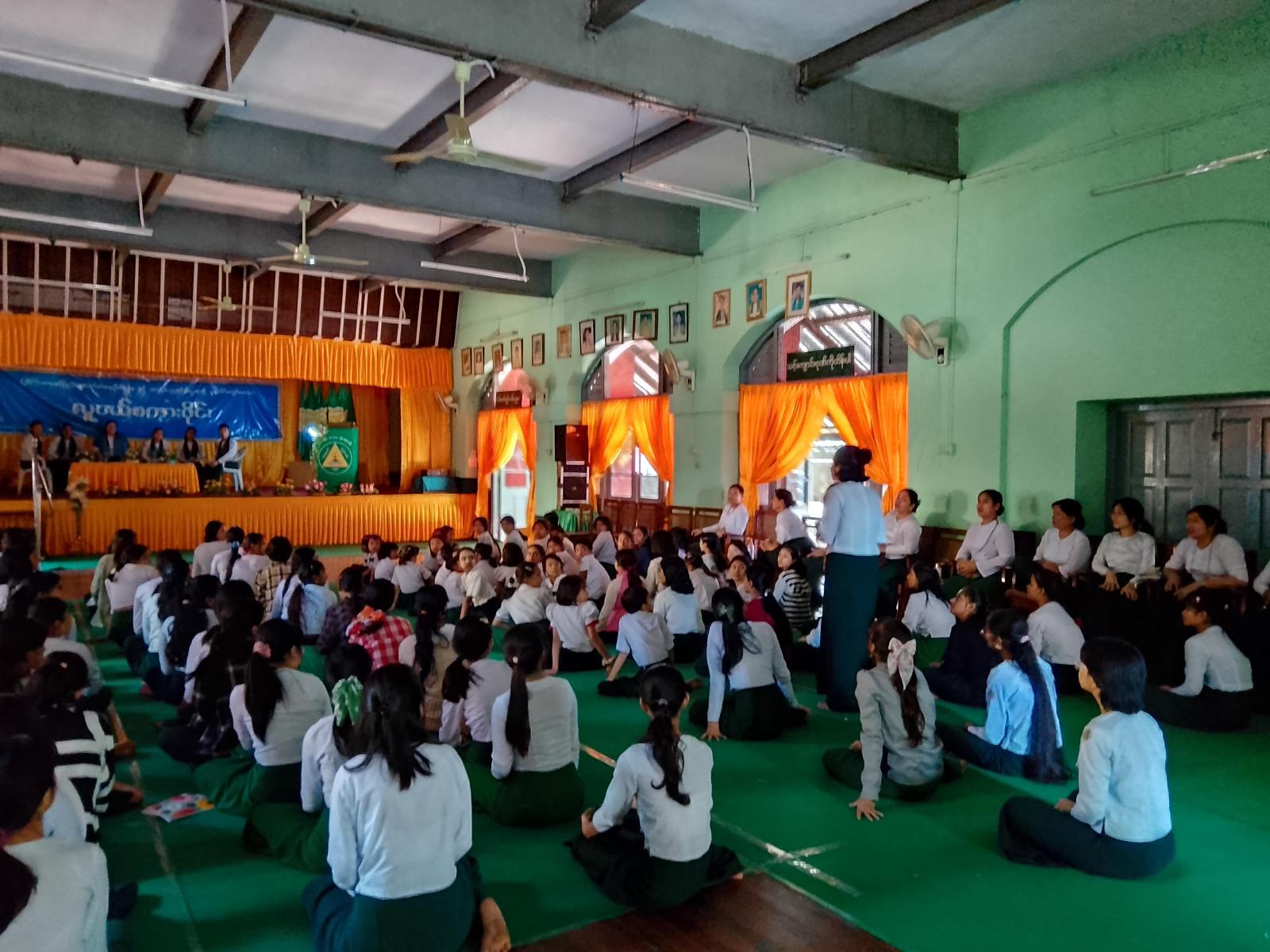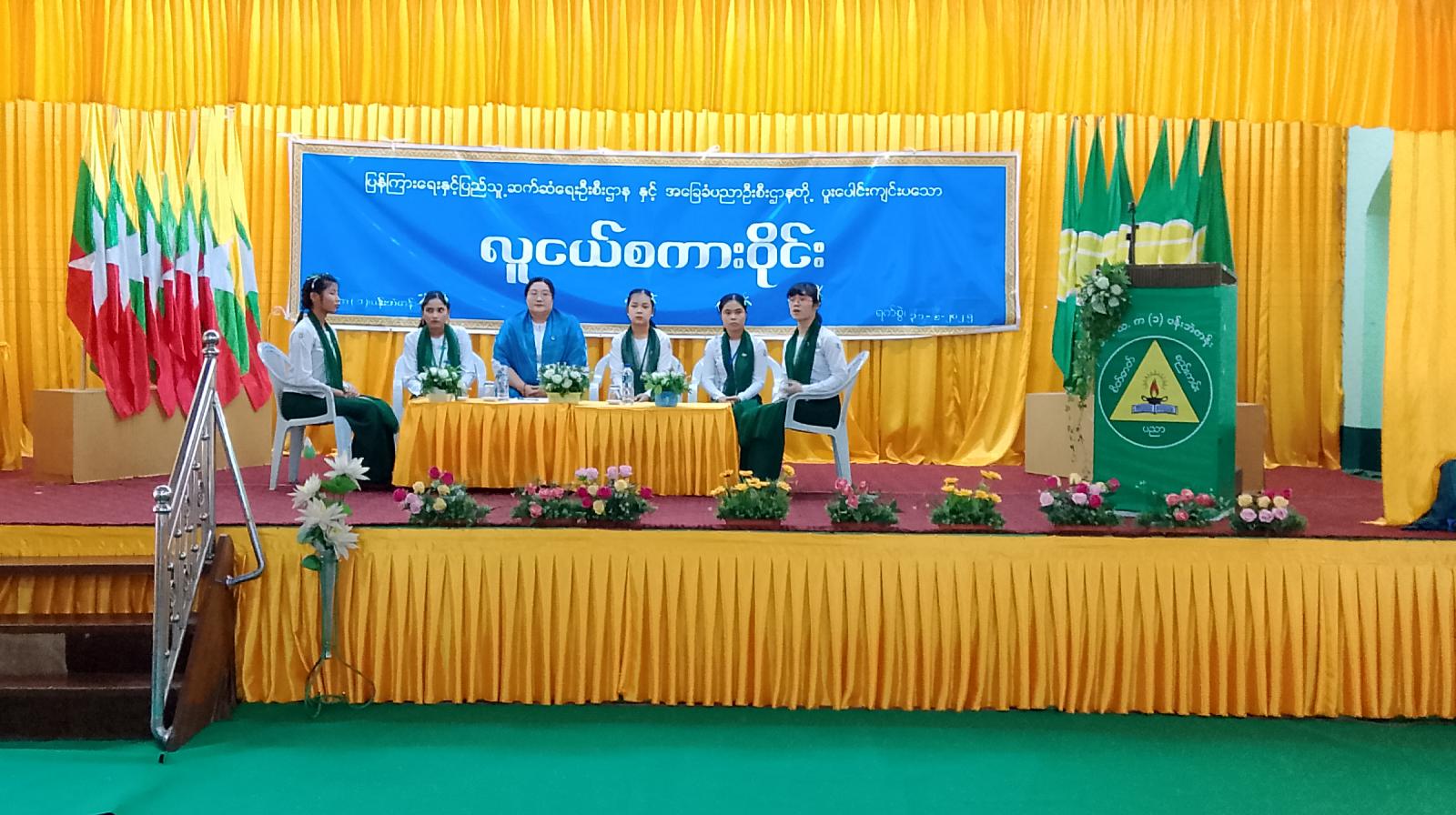 ထို့နောက် ပါဝင်ဆွေးနွေးခဲ့ကြသည့် ကျောင်းသား၊ ကျောင်းသူလေးများအား မြို့နယ်စီမံအုပ်ချုပ်ရေးအဖွဲ့၊ ခေတ္တဥက္ကဋ္ဌဗိုလ်မှူးယောမင်းကို့၊ မြို့နယ်စီမံအုပ်ချုပ်ရေးအဖွဲ့၊ အဖွဲ့ဝင်(၂) ဦးဇော်ဇော်ဝင်း၊ လူဝင်မှုကြီးကြပ်ရေးနှင့်ပြည်သူ့အင်အားဝန်ကြီးဌာနမှ မြို့နယ်ဦးစီးဌာနမှူး ဦးအောင်ကျော်သူနှင့် ပြန်ကြားရေးနှင့်ပြည်သူဆက်ဆံရေးဦးစီးဌာနမှ ဦးစီးအရာရှိ ဒေါ်ဥမ္မာကျော်တို့က လက်ဆောင်ပစ္စည်းများ အသီးသီးချီးမြှင့်ပေးအပ်ခဲ့ပြီး လူငယ်ရေးရာအသိပညာပေးဟောပြောပွဲကို ဆက်လက်ကျင်းပရာ စာရေးဆရာမတင့်တယ်ခင်က လူငယ်နှင့်ယဉ်ကျေးမှုအကြောင်း ဟောပြောခဲ့ကြောင်း သတင်းရရှိသည်။