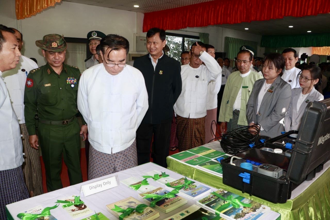 ထို့နောက် တိုင်းဒေသကြီးဝန်ကြီးချုပ်၊ ဒုတိယဝန်ကြီးနှင့် အစိုးရအဖွဲ့ဝန်ကြီးများက ပြခန်းအတွင်း ခင်းကျင်းပြသထားသည့် မိုးယွန်းကြီးအင်းအတွင်း နေထိုင်ကျက်စားသည့် တောရိုင်းတိရစ္ဆာန် ပုံသွင်းရုပ်လုံးများ၊ ဆေးစိမ်ရုပ်ကြွင်းများနှင့် Flyway Network Site (ငှက်ပျံသန်းမှု လမ်းကြောင်းဒေသ) မြေပုံများအား လှည့်လည်ကြည့်ရှုအားပေးခဲ့ကြသည်။