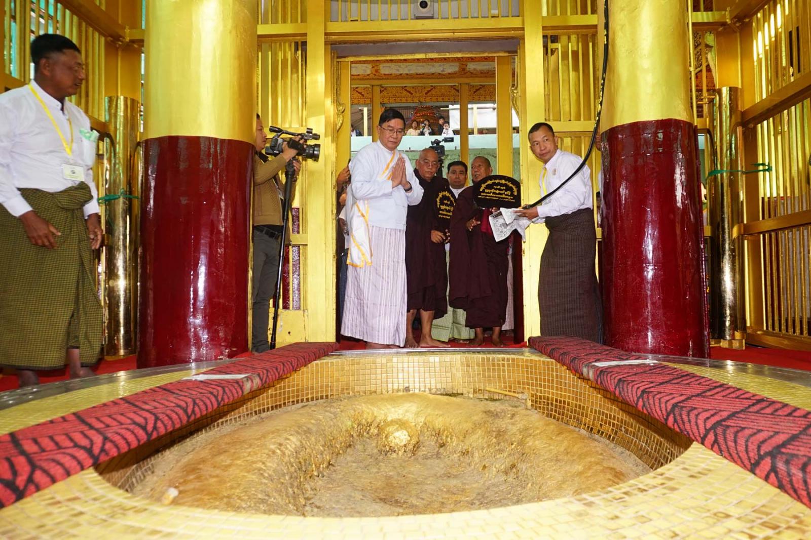 ထို့နောက် နေပြည်တော် လယ်ဝေးမြို့ နဂါးရုံတစ်ထောင် စမတောင်ကျောင်းဆရာတော် အဂ္ဂမဟာသဒ္ဓမ္မ ဇောတိကဓဇ၊ အဂ္ဂမဟာ မင်္ဂလာဓမ္မ ဇောတိကဓဇ၊ ထေရဝါဒ ဗုဒ္ဓသာသန ဇောတိက ဒေါက်တာ ဘဒ္ဒန္တဝံသသီရိနှင့် မကွေးတိုင်းဒေသကြီးအစိုးရအဖွဲ့ ဝန်ကြီးချုပ် သီရိပျံချီ ဦးတင့်လွင်တို့က မင်္ဂလာမုခ်ဦးဆိုင်းဘုတ်အား စက်ခလုတ်နှိပ် ဖွင့်လှစ်ပေးခဲ့ပြီးနောက် တာဝန်ရှိသူများက ဇီဝိတဒါနအဖြစ် ငှက်လွှတ်ခြင်းနှင့် ငါးလွှတ်ခြင်းများ ဆောင်ရွက်ခဲ့သည်။