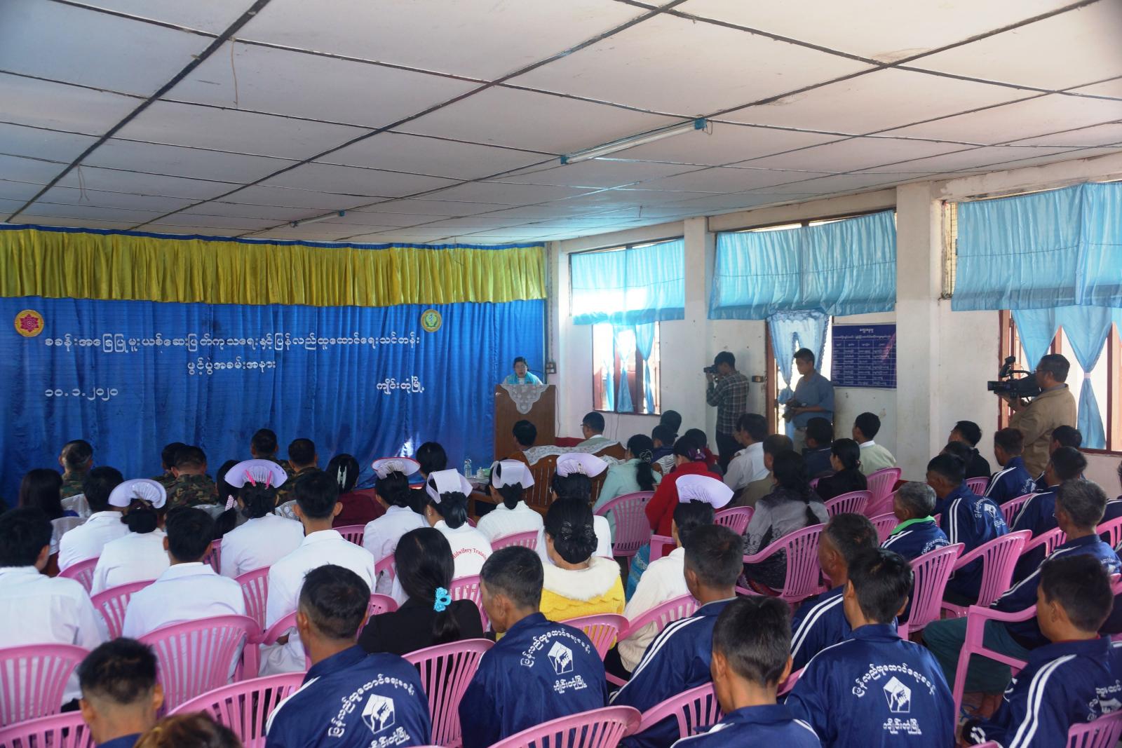 ထို့နောက် မြန်မာနိုင်ငံမူးယစ်ဆေးဝါး ဆန့်ကျင်ရေးအသင်းမှ သင်တန်းအတွက် အလှူငွေများ ထောက်ပံ့ လှူဒါန်းပြီး သင်တန်းဖွင့်ပွဲ အခမ်းအနား တက်ရောက်လာကြသည့် အာခါတိုင်းရင်းသား လူမျိုးရေးရာ ပြည်နယ် ဝန်ကြီး၊ တြိဂံဒေသ တိုင်းစစ်ဌာနချုပ်မှ ဗိုလ်မှူးကြီးများ၊ ပြည်နယ်ဒုတိယအုပ်ချုပ်ရေးမှူးနှင့် တာဝန်ရှိ သူများက သင်တန်းသားများအား တွေ့ဆုံအားပေးစကားပြောကြားခဲ့ကြသည်။