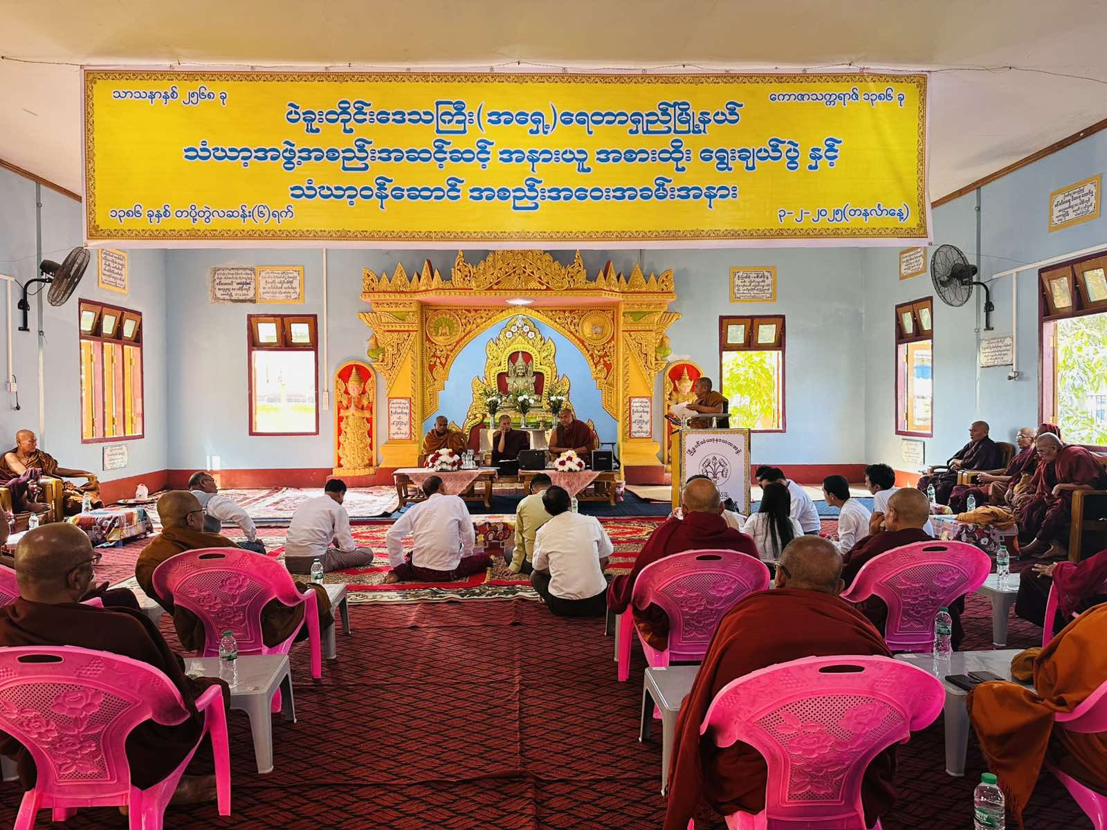 ပဲခူးတိုင်းဒေသကြီး၊ တောင်ငူရိုင်၊ ရေတာရှည်မြို့နယ် သံဃနာယကအဖွဲ့ အနားယူ၊ အစားထိုးရွေးချယ်တင်မြှောက်ခြင်း အခမ်းအနားကို ကံမြင့်ကျောင်းတိုက်၌ ယမန်နေ့နံနက် ၉ နာရီက ပြုလုပ်ခဲ့သည်။