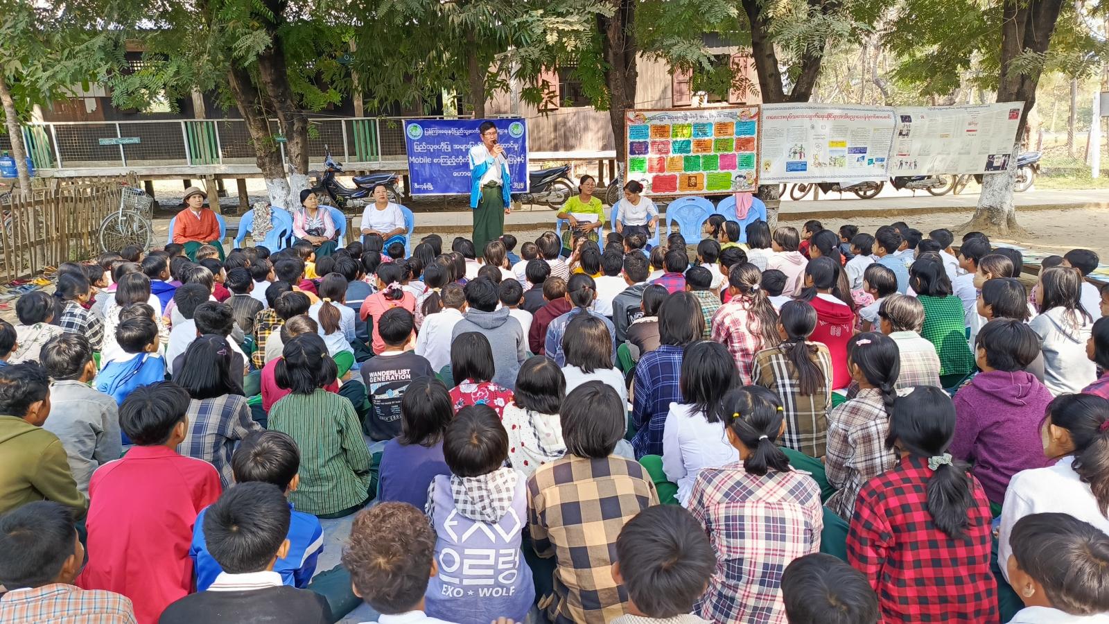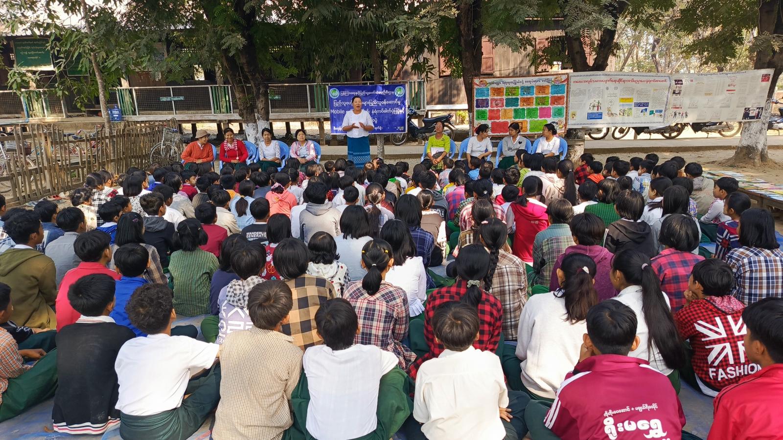 ဆက်လက်၍ ပြန်ကြားရေးနှင့်ပြည်သူ့ဆက်ဆံရေးဦးစီးဌာနမှ ဝန်ထမ်းများက ကျောင်းသား၊ ကျောင်းသူများအား အသိပညာဗဟုသုတရရှိစေမည့် စာအုပ်စာစောင်များကိုပြသ၍ ဖတ်ရှုစေခြင်း၊ ကလေးအလုပ်သမားပပျောက်ရေး နံရံကပ်စာစောင်နှင့် အသိပညာဗဟုသုတကြွယ်ဖို့ စာအုပ်စာပေဖတ်ကြစို့ အသိပညာပေး နံရံကပ်စာစောင်များ ပြသခြင်းတို့ကိုဆောင်ရွက်ခဲ့ရာ ဆရာ၊ ဆရာမများနှင့် ကျောင်းသား၊ ကျောင်းသူများမှ စိတ်ပါဝင်စားစွာ လေ့လာကြည့်ရှုမှတ်သားခဲ့ကြောင်း သိရသည်။
