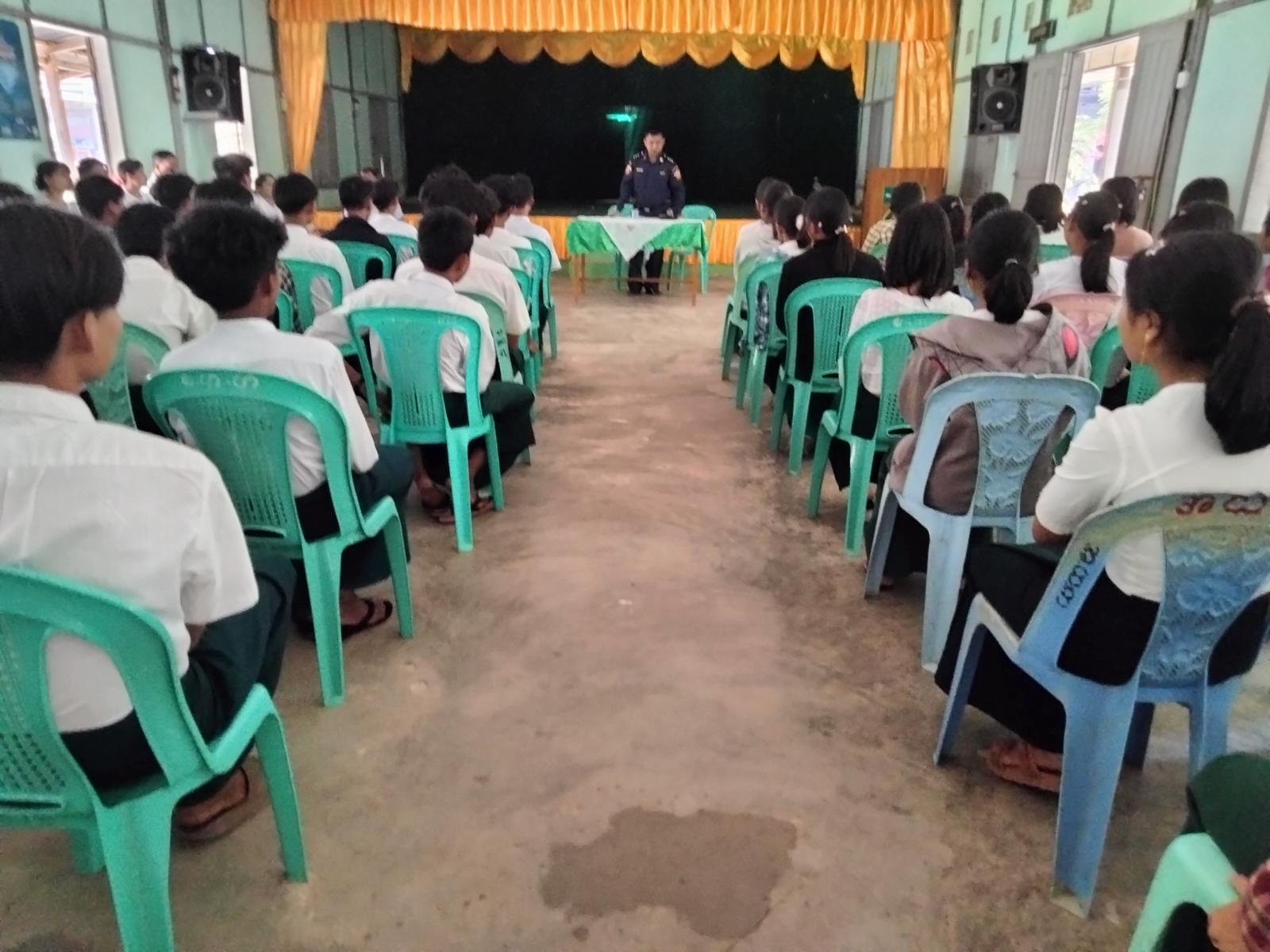 ရှေးဦးစွာ မြို့နယ်မီးသတ်ဦးစီးဌာနမှ မြို့နယ်မီးသတ် ဦးစီးမှူး ဦးအောင်အောင်ဝင်းစိန်က မီးလောင်မှုဖြစ်ပွားရခြင်း အကြောင်းများနှင့် လျှပ်စစ်မီးသုံးစွဲရာတွင် သတိရှိစေရန် မီးကို မပေါ့ဆရန် မီးလောင်မှုဖြစ်ပွားပါက အသက်အိုးအိမ်များ ဆုံးရှုံးတတ်ကြောင်း မီးသတ်ဆေးဘူး အသုံးပြုပုံတို့ကို အသိပညာပေးဟောပြောခဲ့သည်။