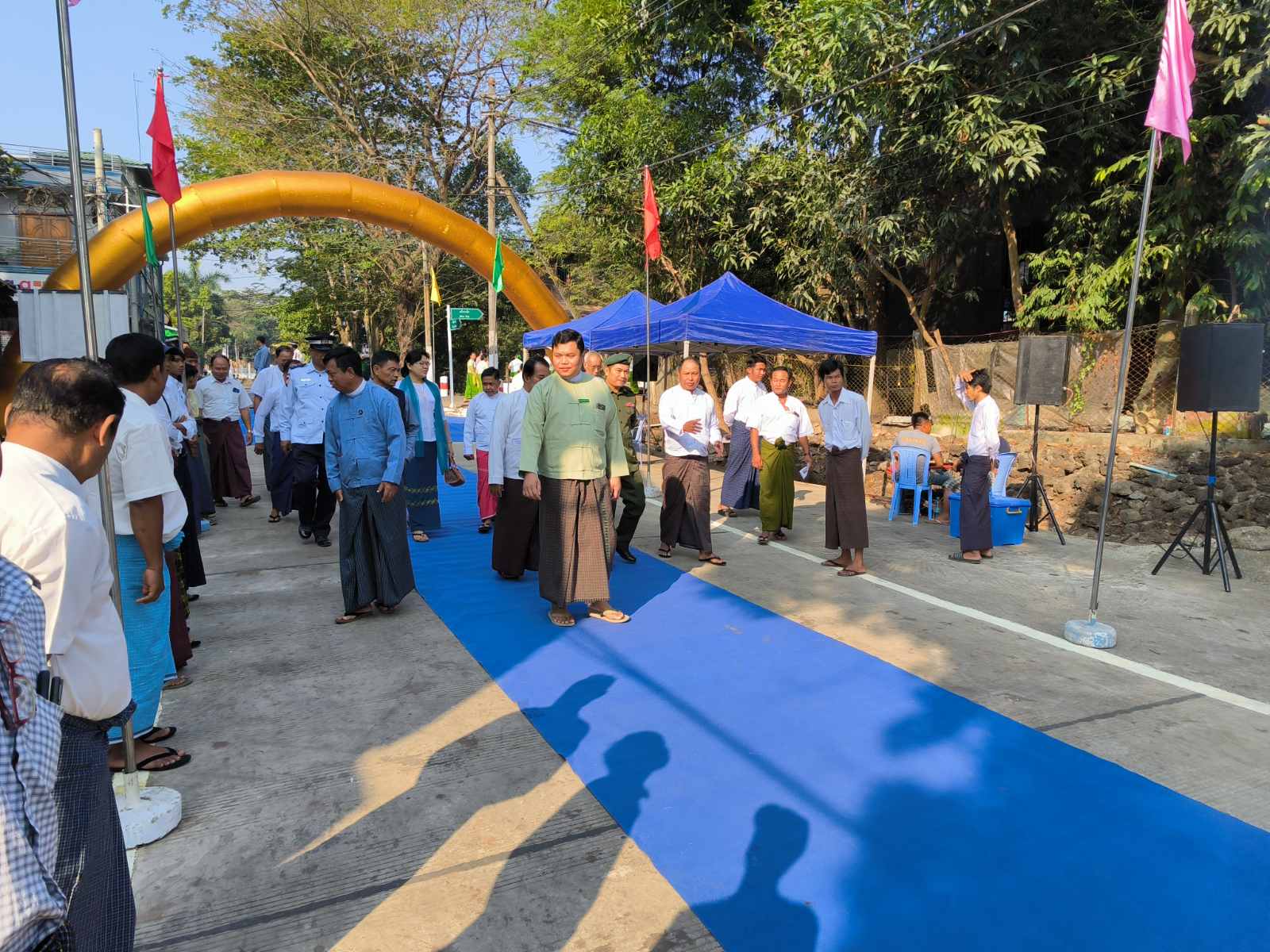 အခမ်းအနားတွင် မြို့နယ်စည်ပင်သာယာရေးအဖွဲ့အမှုဆောင်အရာရှိ ဦးမြင့်ဦးမှ အဖွင့်အမှာစကားပြောကြားကာ မြို့နယ်စည်ပင်သာယာအဖွဲ့၏ လုပ်ငန်းဆောင်တာများကိုရှင်းလင်းပြောကြားခဲ့ပြီး ရပ်ကွက်နေပြည်သူတစ်ဦးမှ ကျေးဇူးတင်စကားပြောကြားခဲ့သည်၊၊ အဆိုပါ လမ်းဖွင့်ပွဲကို ကျောက်တန်းမြို့နယ်စီမံအုပ်ချုပ်ရေးအဖွဲ့ဥက္ကဋ္ဌ ဦးဘုန်းခန့်အောင်၊ အဖွဲ့ဝင်(၁)ဗိုလ်မှူးချမ်းမြေ့ဦး၊ အဖွဲ့ဝင်(၂)ဦးစိုးမြင့်ကျော်၊ မြို့နယ်စည်ပင်သာယာရေးအဖွဲ့အမှုဆောင်အရာရှိဦးမြင့်ဦး ရပ်ကွက်အုပ်ချုပ်ရေးမှူးဦးဆွေဦးတို့က ဖဲကြိုးဖြတ်ဖွင့်လှစ်ပေးခဲ့သည်၊၊