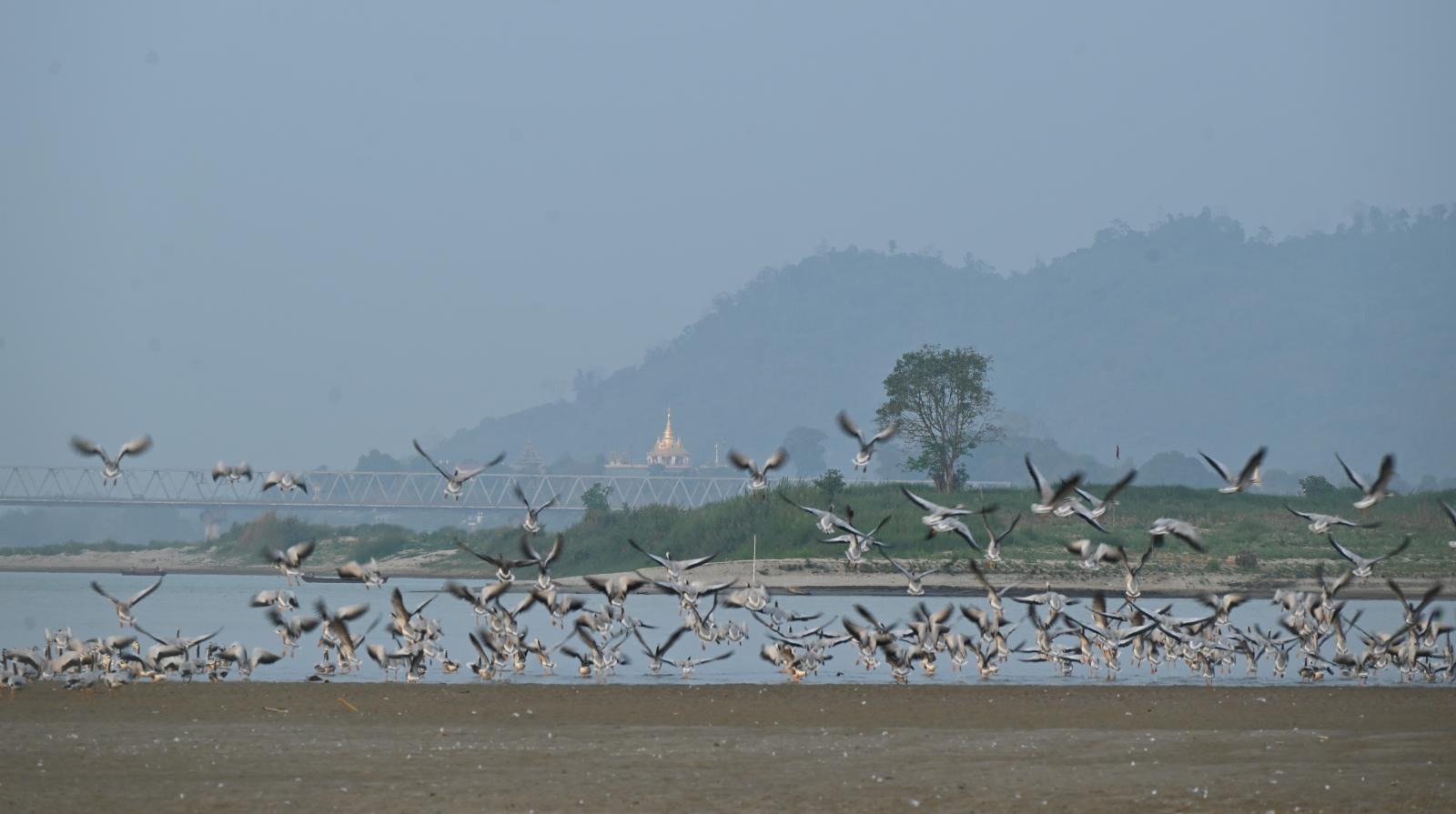 ကချင်ပြည်နယ်၊ မြစ်ကြီးနားမြို့ ဧရာဝတီမြစ်အတွင်း ရေလယ်ကျွန်းသဲသောင်ပြင်ပေါ်တွင် ဆောင်းခိုငှက်မျိုးစိတ်တစ်ခုဖြစ်သည့် တောငန်းခေါင်းကြား (Bar-headed Goose) ကောင်ရေ ၄၀၀ ကျော်ခန့် အုပ်စုလိုက် ယခင်နှစ်မှ ဒီဇင်ဘာလကုန်ပိုင်းလောက်မှစတင်၍ လာရောက်ကျက်စား နေထိုင်လျက်ရှိသည်ကို တွေ့ရှိရသည်။
