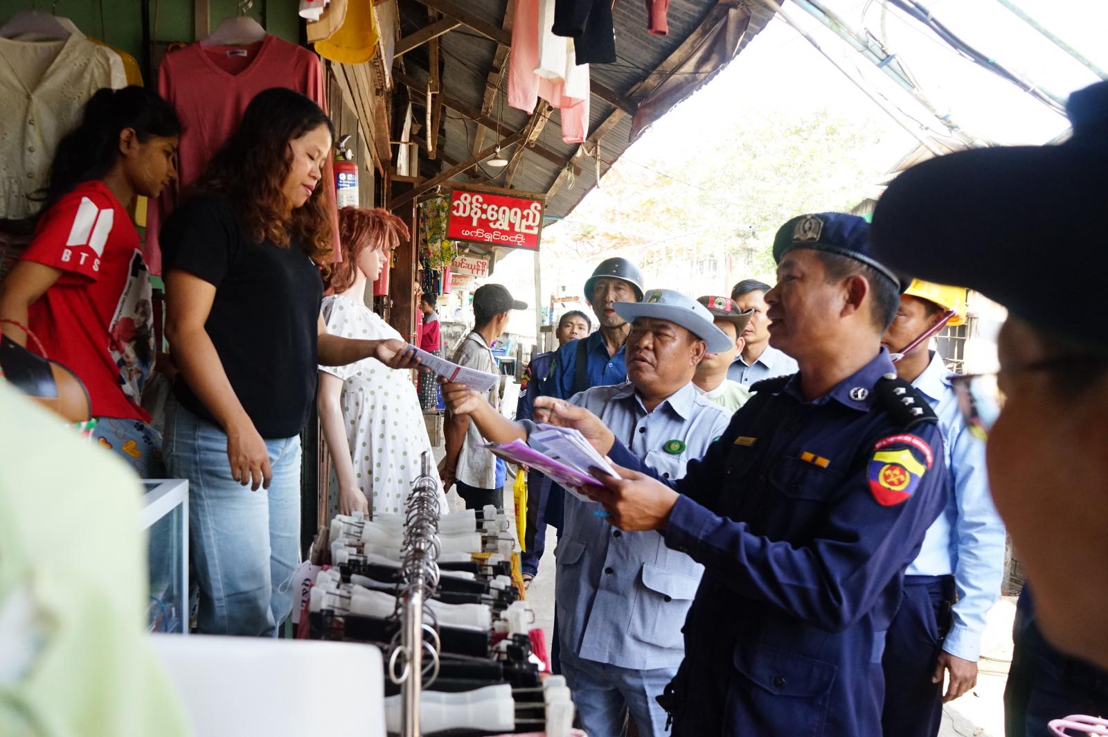 အသိပညာပေးလုပ်ငန်းများ ဆောင်ရွက်ရာတွင် ဈေးသူ/ဈေးသားများအား မီးဘေးလုံခြုံရေး အသိပညာပေး လက်ကမ်းစာစောင်များ ဝေငှခြင်း၊ မီးဘေးလုံခြုံရေးအတွက် လိုအပ်သည့် စစ်ဆေးမှုများအား ဆောင်ရွက်ခြင်း၊ မီးဘေးကာကွယ်တားဆီးနိုင်ရေးအတွက် လိုက်နာရမည့်အချက်များနှင့် ရှောင်ကျဉ်ရမည့်အချက်များအား အသိပညာပေး မှာကြားခြင်းတို့ဆောင်ရွက်ပြီး ဈေးအတွင်း၌ လျှပ်စစ်သွယ်တန်းသုံးစွဲမှုအခြေအနေများ၊ မီးသုံးစွဲမှုအခြေအနေများ၊ မီးဘေးတားဆီးကာကွယ်ရေးပစ္စည်းများ ထားသိုသုံးစွဲမှု အခြေအနေများ စစ်ဆေးကာ လိုအပ်သည်များအား လိုက်နာဆောင်ရွက်ကြရန် အသိပညာပေး မှာကြားခဲ့ကြကြောင်း သိရသည်။