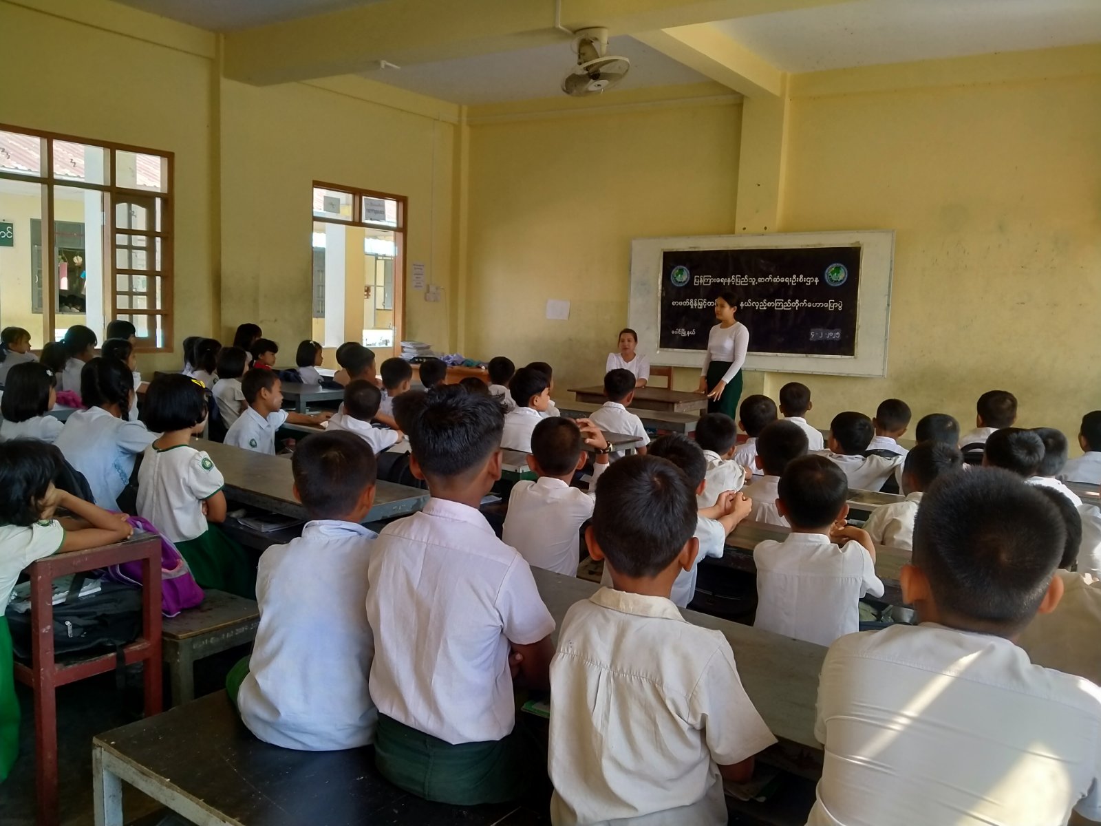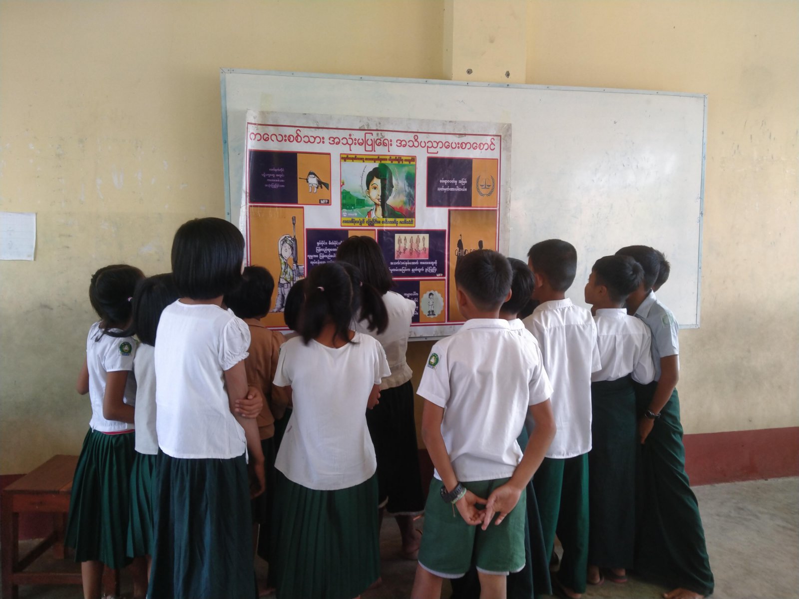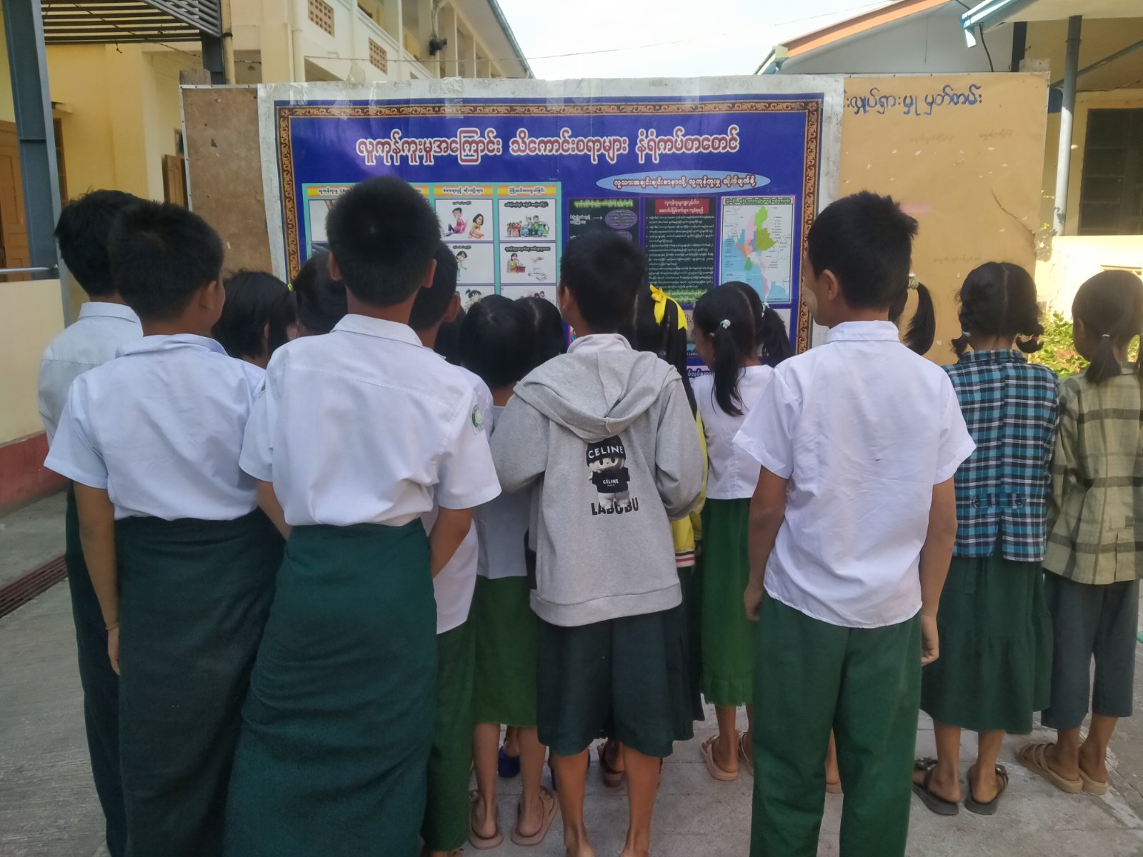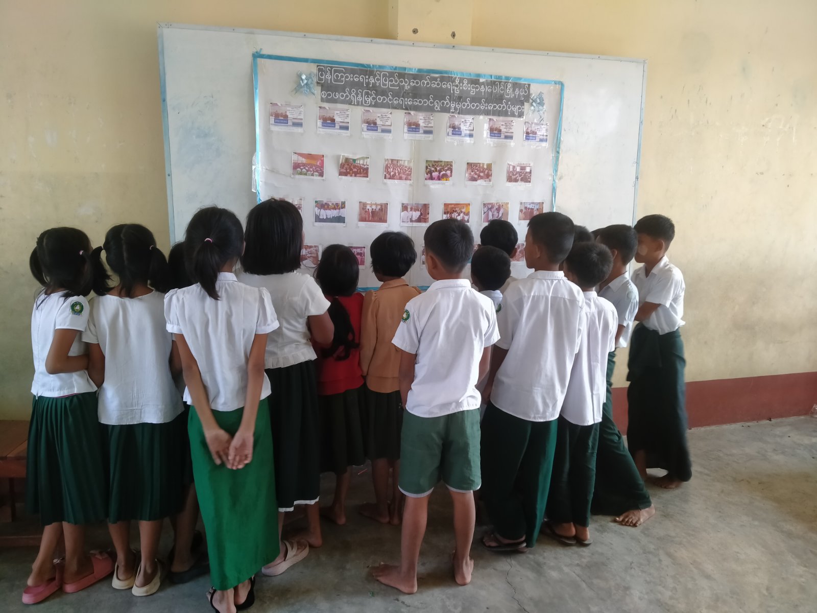 ထို့နောက် ကျောင်းအုပ်ဆရာမကြီးက ကျေးဇူးတင်စကားပြောကြားပြီး ပြန်ကြားရေးနှင့်ပြည်သူ့ဆက်ဆံရေးဦးစီးဌာနမှ ကျောင်းသား၊ ကျောင်းသူများ ဖတ်ရှုလေ့လာနိုင်ရန် ရုပ်ပြပုံပြင်များ၊ စာစောင်များစသည့် ကလေးများအသိပညာတိုးပွားရေး စာအုပ်စာပေများ၊ စာဖတ်ရှိန်မြှင့်တင်ရေးတို့နှင့် ပတ်သက်သည့် ဆောင်းပါး၊ ကဗျာ၊ ကာတွန်း သိမှတ်ဖွယ်ရာများ စသည့်အသိပညာပေးနံရံကပ်စာစောင်များ ဓာတ်ပုံများကို ခင်းကျင်းပြသခဲ့ရာ ကျောင်းသား၊ ကျောင်းသူများက စိတ်ပါ၀င်စားစွာ ကြည့်ရှုလေ့လာခဲ့ကြောင်း သိရသည်။