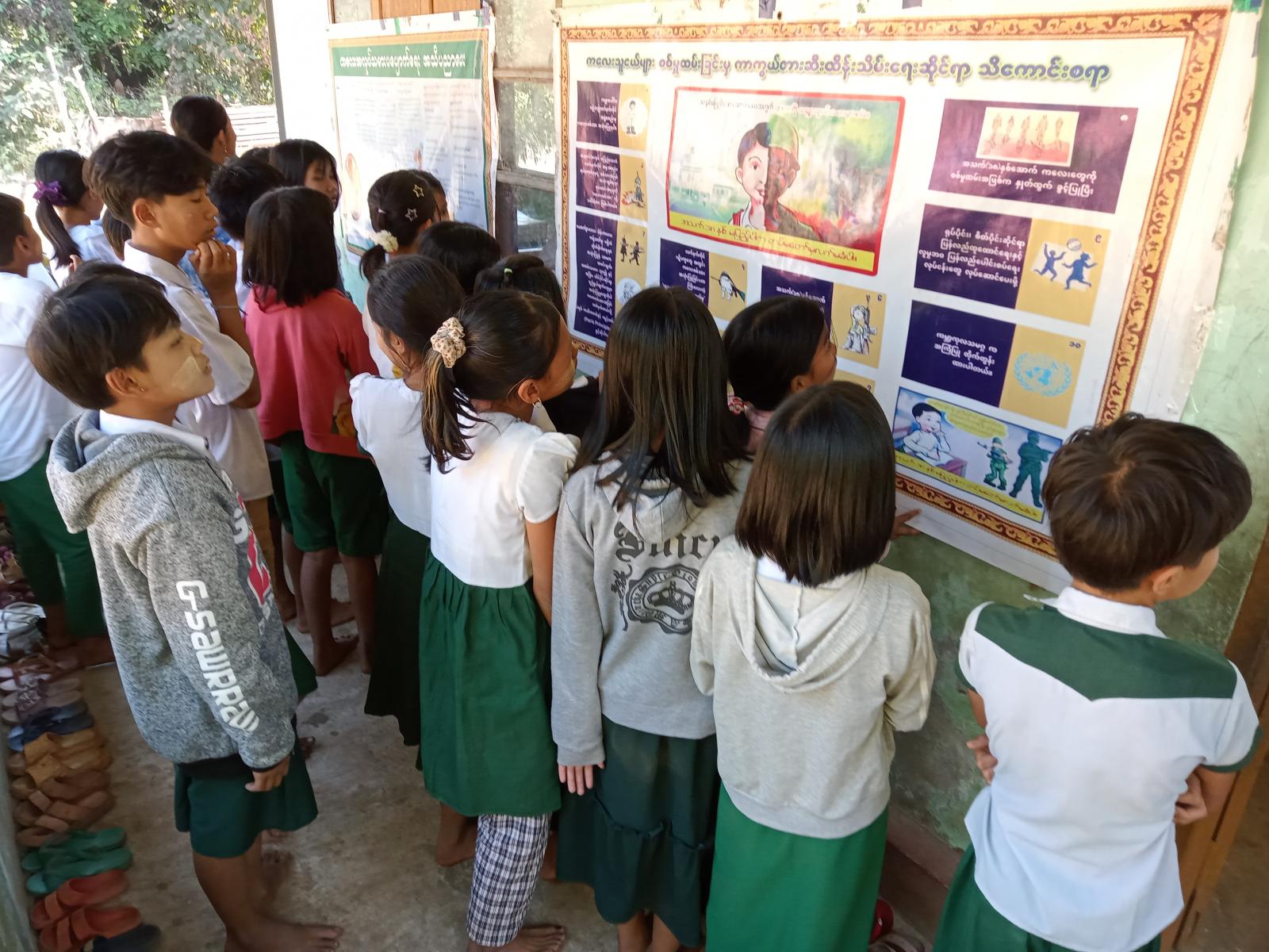 အဆိုပါ အသိပညာပေးလုပ်ငန်းတွင် မူးယစ်ဆေးဝါးအန္တရာယ်တားဆီးကာကွယ်ရေး၊ ကလေးအလုပ်သမားပပျောက်ရေး စသည့် အသိပညာပေးနံရံကပ်စာစောင်များကို ခင်းကျင်းပြသခဲ့ရာ ကျောင်းသား၊ ကျောင်းသူများက စိတ်ပါ၀င်စားစွာ ကြည့်ရှုလေ့လာခဲ့ကြောင်း သိရသည်။