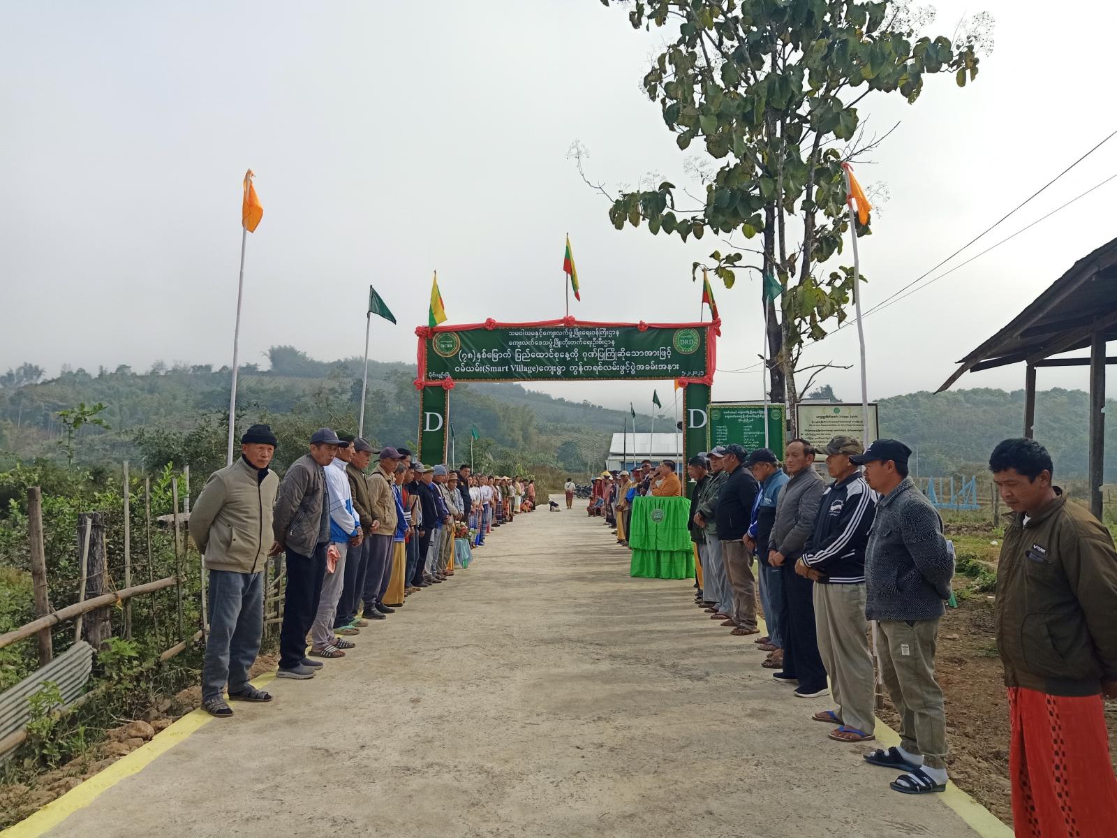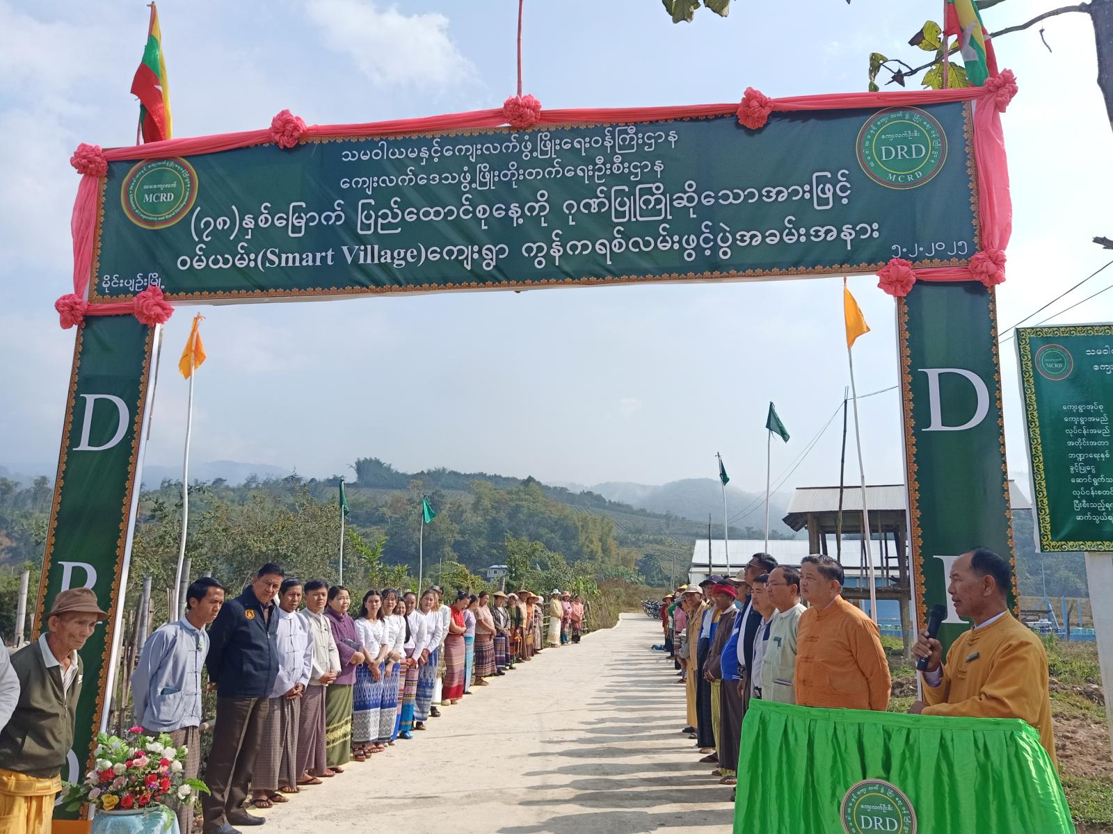 အဆိုပါ ခေတ်မီစံပြကျေးရွာ ထူထောင်ရေးလုပ်ငန်း(Smart Village) စီမံကိန်းဖြင့် အကောင်အထည်ဖော်ဆောင်ရွက်သည့် ကျေးရွာကွန်ကရစ်လမ်းခင်းခြင်း ဖွင့်ပွဲအခမ်းအနားသို့ မြို့နယ်စီမံအုပ်ချုပ်ရေးအဖွဲ့ဥက္ကဋ္ဌနှင့်အဖွဲ့ဝင်များ၊ ဌာနဆိုင်ရာတာဝန်ရှိသူများနှင့် ကျေးရွာသူ/ကျေးရွာသားများ စုံလင်စွာတက်ရောက်ခဲ့ကြကြောင်း သတင်းရရှိသည်။