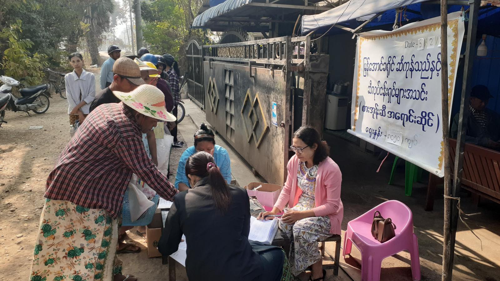 မြန်အောင်မြို့နယ် ဆီကုန်သည်နှင့်ဆီလုပ်ငန်းရှင်များအသင်းမှ စားအုန်းဆီ တစ်ပိဿာ (၈၀၅၀) ကျပ်နှုန်းဖြင့် ရောင်းချပေးမှုအား မြို့နယ်စီမံအုပ်ချုပ်ရေးအဖွဲ့၊ အဖွဲ့ဝင်(၂) ဦးမြင့်နိုင်၊ မြို့နယ်စားသုံးသူရေးရာဦးစီးဌာန ဦးစီးမှူး ဦးမြင့်အောင်နှင့် မြို့နယ်ဆီကုန်သည်နှင့် ဆီလုပ်ငန်းရှင်များအသင်းဥက္ကဋ္ဌ ဦးမင်းဇော်ဦး၊ ဌာနဆိုင်ရာတာဝန်ရှိသူများ၊ ရပ်ကွက်အုပ်ချုပ်ရေးမှူးနှင့် ရပ်မိရပ်ဖတို့က ကြည့်ရှုအားပေးကူညီ ဆောင်ရွက်ပေးခဲ့ကြသည်။