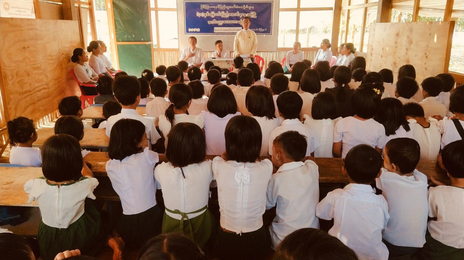 ဆက်လက်၍ အ-မ-က-အောက်ကင်းအရှေ့ ကျောင်းအုပ်ဆရာကြီးဦးကျော်စိုးအောင်က ကျေးဇူးတင်စကားပြန်လည်ပြောကြားပြီး အသိ ပညာပေးဟောပြောစဉ် ကျောင်းသူ/သားများက စိတ်ဝင်တစား လေ့လာမှတ်သားတတ်သည့် အလေ့အထများရရှိစေရန်အတွက် ပြန်လည်ဆန်းစစ်မေးမြန်း၍ မှန်ကန်စွာ ဖြေဆိုနိုင်သည့် ကျောင်းသား/သူ (၃)ဦးအား ဦးစီးအရာရှိ ဦးထိန်ဝင်းနှင့် တာဝန်ရှိသူများက ဆုငွေများချီးမြှင့်ပေးအပ်ကြသည်။