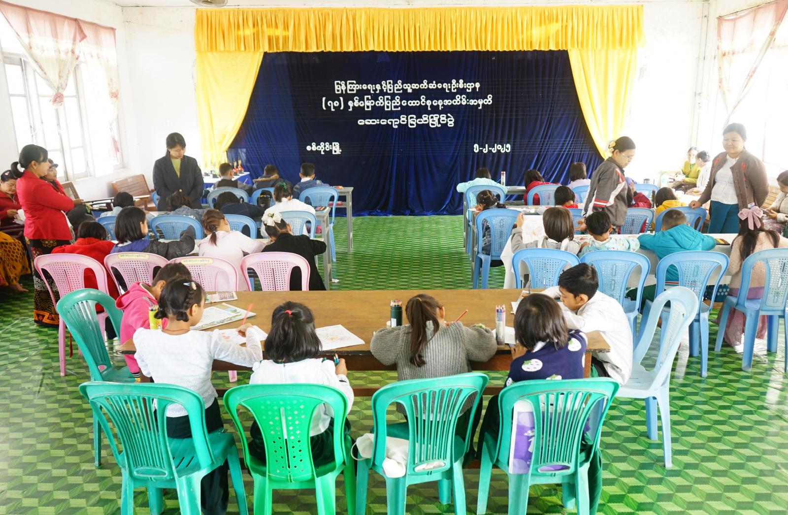 ရှေးဦးစွာ ပြန်ကြားရေးနှင့်ပြည်သူ့ဆက်ဆံရေးဦးစီးဌာန ဦးစီးအရာရှိ ဒေါ်မေဇင်မိုးက ကျောင်းသား၊ ကျောင်းသူများအား အသိပညာ၊ ဗဟုသုတ ပြည့်စုံစေရန်၊ စာဖတ်သည့် အလေ့အကျင့်ကောင်းများနှင့် တီထွင်ဖန်တီးတတ်သည့် စွမ်းရည်များတိုးတက်စေရန်အတွက် ဆေးရောင်ခြယ်ပြိုင်ပွဲများ ကျင်းပပြုလုပ်ရသည့် ရည်ရွယ်ချက်များနှင့် ပြိုင်ပွဲစည်းကမ်းများကို ရှင်းလင်းပြောကြားခဲ့ပြီး မူလ တန်းအဆင့် ကျောင်းသား၊ ကျောင်းသူ(၃၀)ဦးတို့က ဆေးရောင်ခြယ်ပြိုင်ပွဲအား ဝင်ရောက်ယှဉ်ပြိုင် ခဲ့ကြသည်။