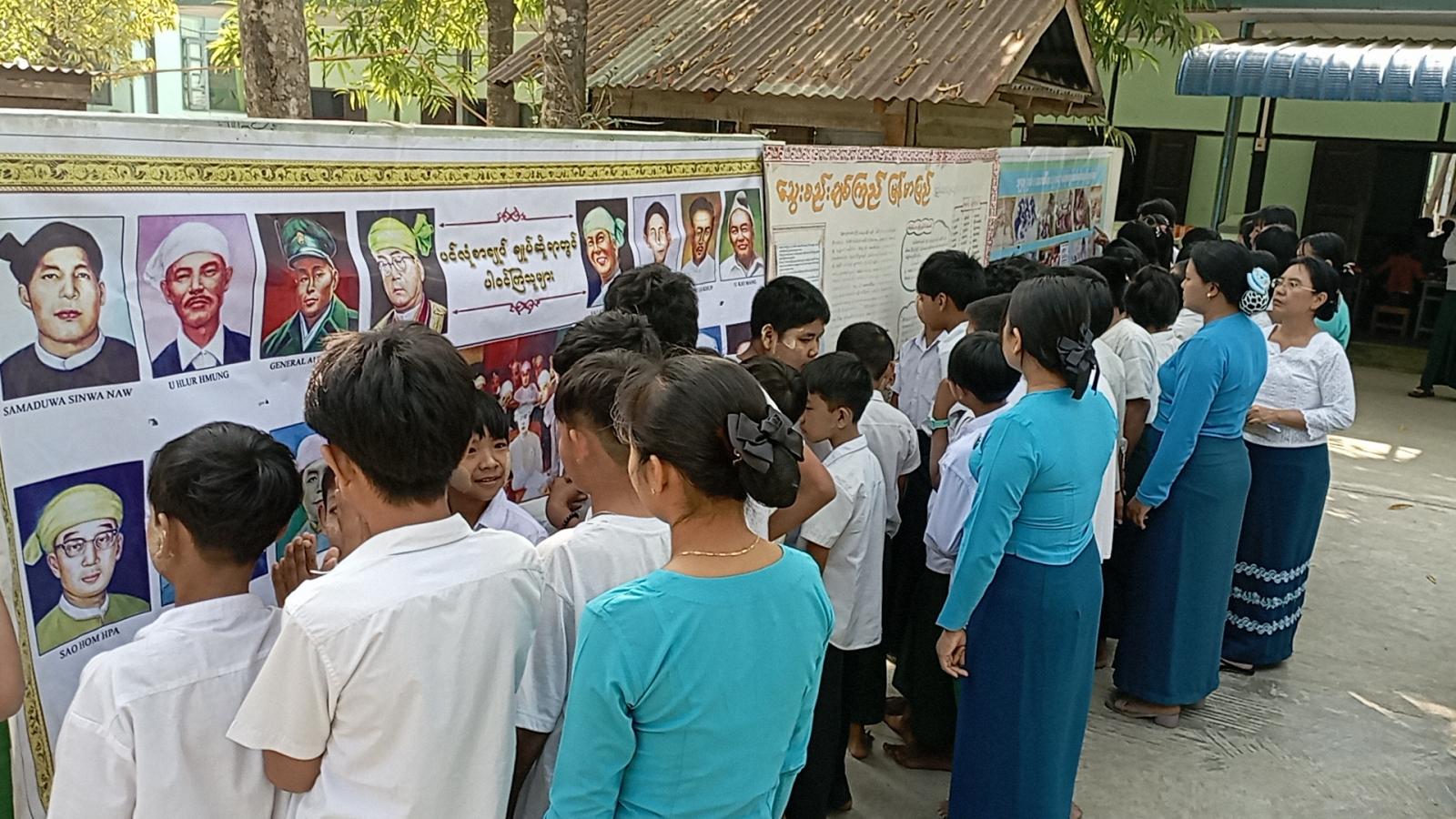 ပဲခူးတိုင်းဒေသကြီး၊ နတ်တလင်းခရိုင်၊ သဲကုန်းမြို့နယ် ပြန်ကြားရေးနှင့်ပြည်သူ့ဆက်ဆံရေးဦးစီးဌာနနှင့် အခြေခံပညာဦးစီးဌာနတို့ပူးပေါင်း၍ (၇၈)နှစ်မြောက် ပြည်ထောင်စုနေ့အထိမ်းအမှတ် အသိပညာပေးဟောပြောပွဲ၊ နံရံကပ်စာစောင်နှင့် စာအုပ်ပြပွဲကို ယနေ့နံနက်(၁၀)နာရီအချိန်က ကွင်းဆင်းဆောင်ရွက်ခဲ့သည်။