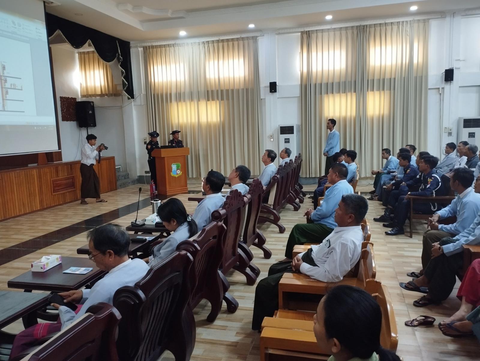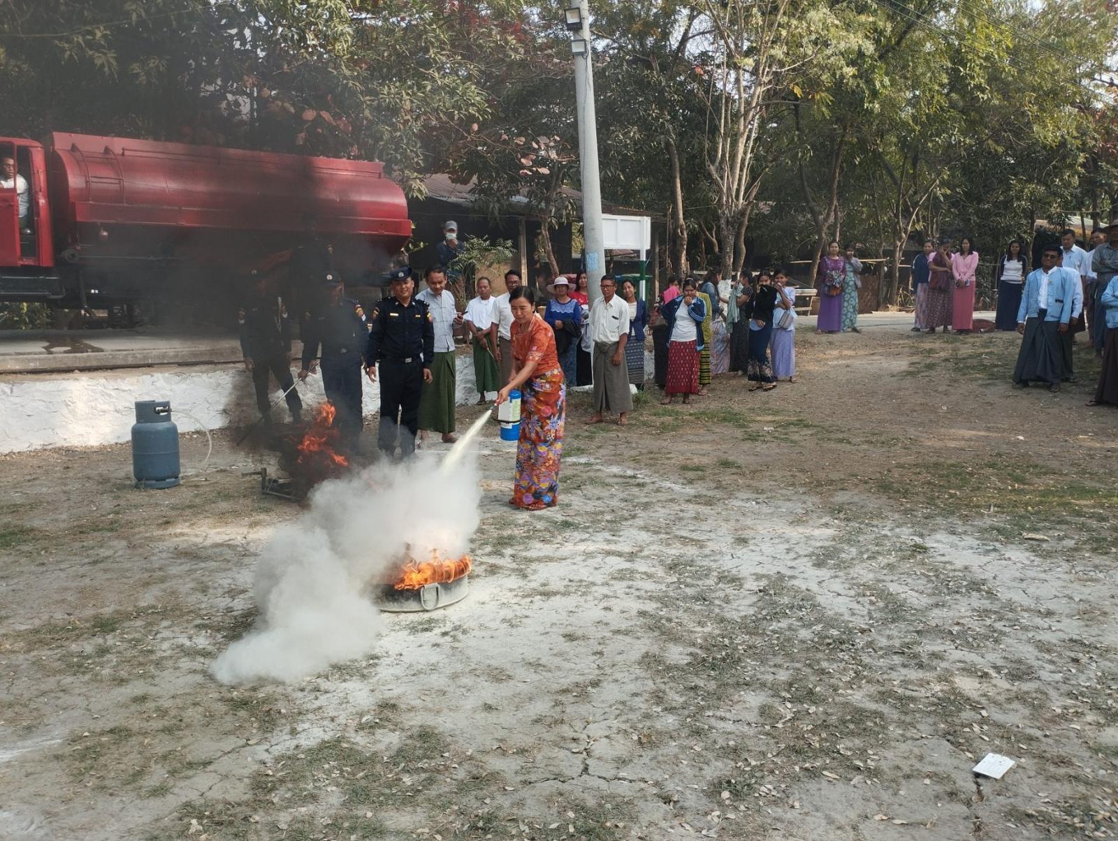 ဦးစွာ အပူပိုင်းဒေသ စိမ်းလန်းစိုပြည်ရေးဦးစီးဌာန၊ ညွှန်ကြားရေးမှူးချုပ် ဦးအောင်သူက အဖွင့်အမှာစကားပြောကြားပြီး၊ မြို့နယ်မီးသတ်ဦးစီးအရာရှိ ဦးမင်းသန့်က မီးဘေးကြိုတင်ကာကွယ်ရေး အသိပညာပေးဟောပြောရာတွင် မြို့နယ်အတွင်းရှိ ဌာနဆိုင်ရာရုံးများ မီးဘေးအန္တရာယ် ကာကွယ်ရေးပစ္စည်းများဖြစ်သည့် မီးသတ်ဆေးဘူး၊ မီးချိတ်မီးကပ် အသုံးပြုပုံ၊ ရေသိုလှောင်ကန်အကြောင်း၊ မီးလောင်မှုဖြစ်စဥ်များ၊ မီးအတန်းအစားများ၊ လျှပ်စစ်မီးအန္တရာယ်နှင့် မီးငြှိမ်းသတ်ရေးနည်းလမ်းများအကြောင်း စသည်တို့အား ရှင်းလင်းဟောပြောခဲ့သည်။