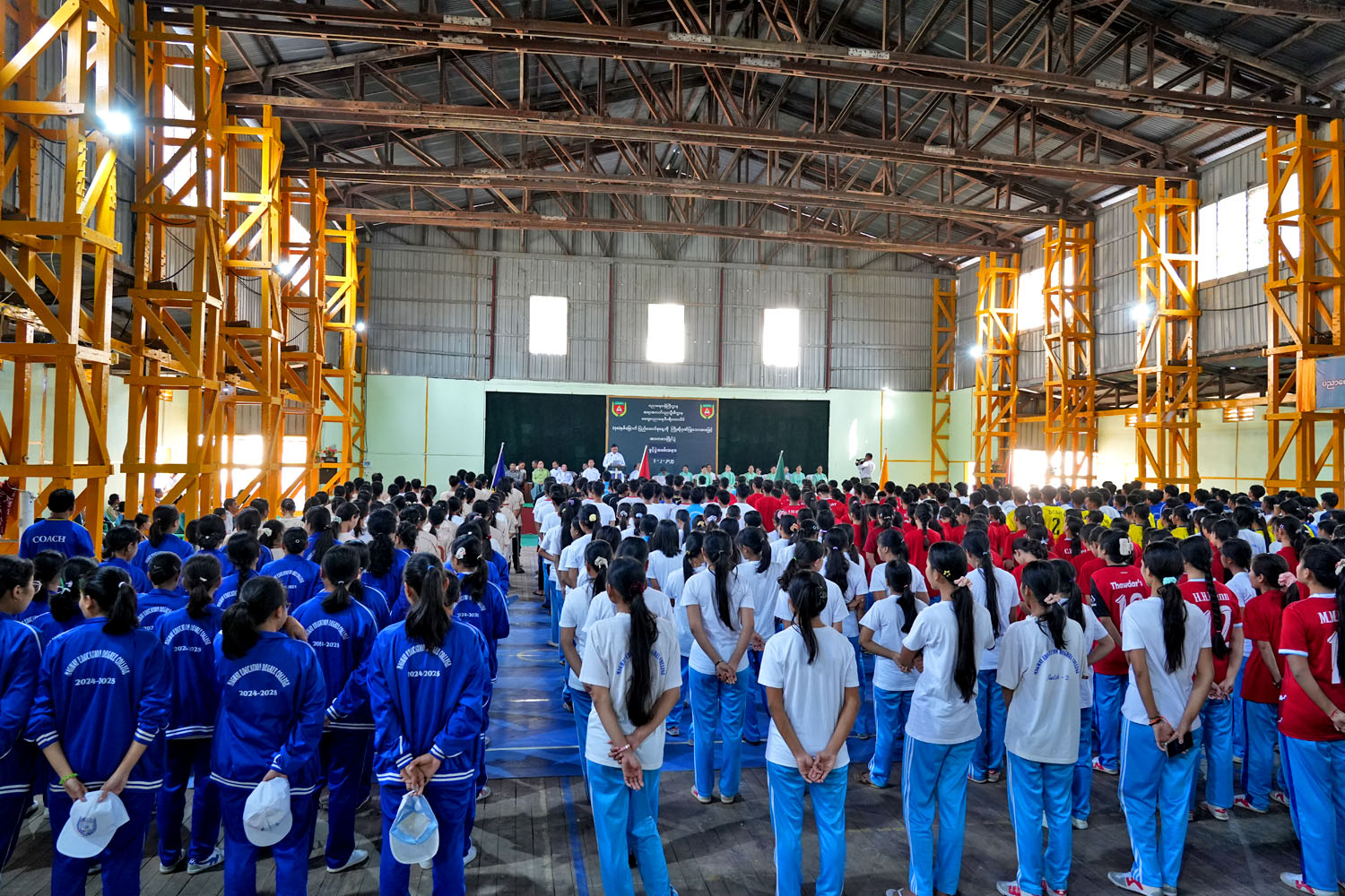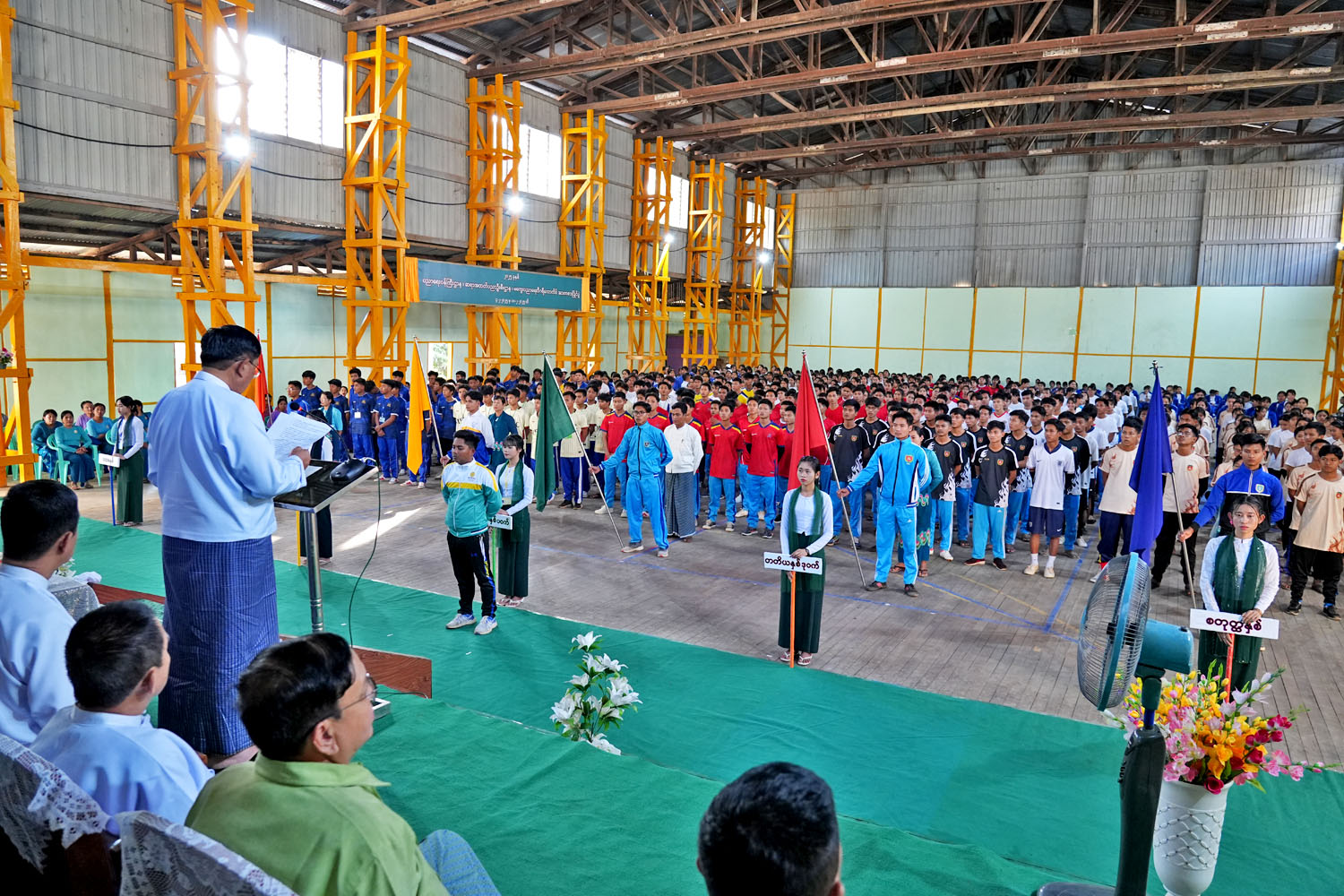 ဦးစွာ မကွေးတိုင်းဒေသကြီးဝန်ကြီးချုပ် ဦးတင့်လွင်က အမှာစကားပြောကြားရာတွင် အားကစားပြိုင်ပွဲတွင် ပါဝင်ယှဉ်ပြိုင်မည့် ကျောင်းသား၊ ကျောင်းသူများအနေဖြင့် နိုင်ငံတော်က နိုင်ငံတကာနှင့် ရင်ဘောင်တန်းနိုင်ဖို့ ဘက်စုံထောင့်စုံကနေ ဆောင်ရွက်လျက်ရှိရာ ပညာရေးကဏ္ဍကိုလည်း အထူးအလေးထား ဆောင်ရွက်လျက်ရှိပါကြောင်း၊ ပညာရေးကဏ္ဍတွင် ဘက်စုံထူးချွန်သော ကျောင်းသား၊ ကျောင်းသူများကို မွေးထုတ်ပေးနိုင်ဖို့လိုအပ်ပြီး ဘက်စုံထူးချွန်သော ကျောင်းသား၊ ကျောင်းသူများကို မွေးထုတ်ပေးနိုင်ဖို့ဆိုရင် ဆရာ၊ ဆရာမများကလည်း ဘက်စုံထူးချွန်တဲ့ ဆရာ၊ ဆရာမများဖြစ်ဖို့ လိုအပ်ပါကြောင်း၊ နိုင်ငံတစ်နိုင်ငံ၏ ဖွံ့ဖြိုးတိုးတက်မှုသည် ထိုနိုင်ငံသားတိုင်း၏ ကျန်းမာကြံ့ခိုင်မှုနှင့် စိတ်နေစိတ်ထားတို့ တိုက်ရိုက်အချိုးကျလျက်ရှိပြီး တစ်မျိုးသားလုံး ကျန်းမာကြံ့ခိုင်ရေး၊ အားကစား နည်းအလိုက် မျိုးဆက်သစ်များ စဉ်ဆက်မပြတ် ပေါ်ထွက်ရေးမှသည် နိုင်ငံတကာ အားကစားပြိုင်ပွဲများတွင် အောင်မြင်မှုရရှိရေးနှင့် လူငယ်လူရွယ်များ၏ ဘက်စုံဖွံ့ဖြိုးတိုးတက်ရေး လုပ်ငန်းစဉ်များကို ဦးတည်ရည်မှန်းချက်များအဖြစ် သတ်မှတ်အကောင်အထည်ဖော် ဆောင်ရွက်လျက်ရှိပါကြောင်း၊ ထို့ပြင် နိုင်ငံတော်စီမံအုပ်ချုပ်ရေးကောင်စီ၏ ဦးတည်ချက် (၉) ရပ်တွင် ပါဝင်သော လူမှုရေးဦးတည်ချက် (၃) ရပ်၌ တစ်မျိုးသားလုံး သက်ရှည်ကျန်းမာကြံ့ခိုင်ရေးအတွက် ပြည်သူအားလုံး အကျုံးဝင်သည့် ကျန်းမာရေးကဏ္ဍနှင့် အားကစားကဏ္ဍမြှင့်တင် ဆောင်ရွက်ရေးနှင့် နိုင်ငံဖွံ့ဖြိုးတိုးတက်ရေး လုပ်ငန်းစဉ်များ၌ “လူငယ်များအနေဖြင့် အဓိကစွမ်းအားစုအဖြစ် ပါဝင်နိုင်ရေး၊ ဗလငါးတန်နှင့် ပြည့်စုံသော လူငယ်များဖြစ်စေရန် လူငယ်ကဏ္ဍကို မြှင့်တင်ဆောင်ရွက်ရေး” ဆိုသည့် ဦးတည် ရည်မှန်းချက်များကို ချမှတ်ခဲ့ပါကြောင်း၊ နိုင်ငံတော်စီမံအုပ်ချုပ်ရေးကောင်စီက အားကစားကဏ္ဍတွင် ပြည်သူအားလုံး ပါဝင်နိုင်အောင် ဆောင်ရွက်လျက်ရှိရာ ပြည်တွင်း၌ အားကစားပြိုင်ပွဲ အမျိုးမျိုးကို ရာသီအလိုက် ဖော်ဆောင်ပေးလျက်ရှိပြီး အစိုးရဝန်ကြီးဌာန အသီးသီးနှင့် တက္ကသိုလ်များ၊ ကျောင်းများတွင် အားကစားပြိုင်ပွဲများကို အခါအားလျော်စွာ ကျင်းပစေလျက် ရှိပါကြောင်း၊ ယနေ့ အားကစားပြိုင်ပွဲ ပါဝင်ယှဉ်ပြိုင်မည့် မောင်မယ်များအနေဖြင့် စည်းလုံးညီညွှတ်၍ သဟဇာတဖြစ်သည့် အနာဂါတ် လူ့ဘောင် အဖွဲ့အစည်းအား ထူးချွန်ထက်မြက်သော၊ ကျန်းမာကြံ့ခိုင်သော၊ အကျင့်စာရိတ္တ ကောင်းမွန်သော နိုင်ငံကြီးသား ပီသသော၊ စိတ်ဓာတ်စည်းကမ်းကောင်းမွန်သော၊ လူကောင်း လူတော်များဖြင့်သာ ဖန်တီးဖော်ဆောင်ပေးနိုင်မည်ဖြစ်ရာ နိုင်ငံအတွက် လူငယ်များ ဘက်စ