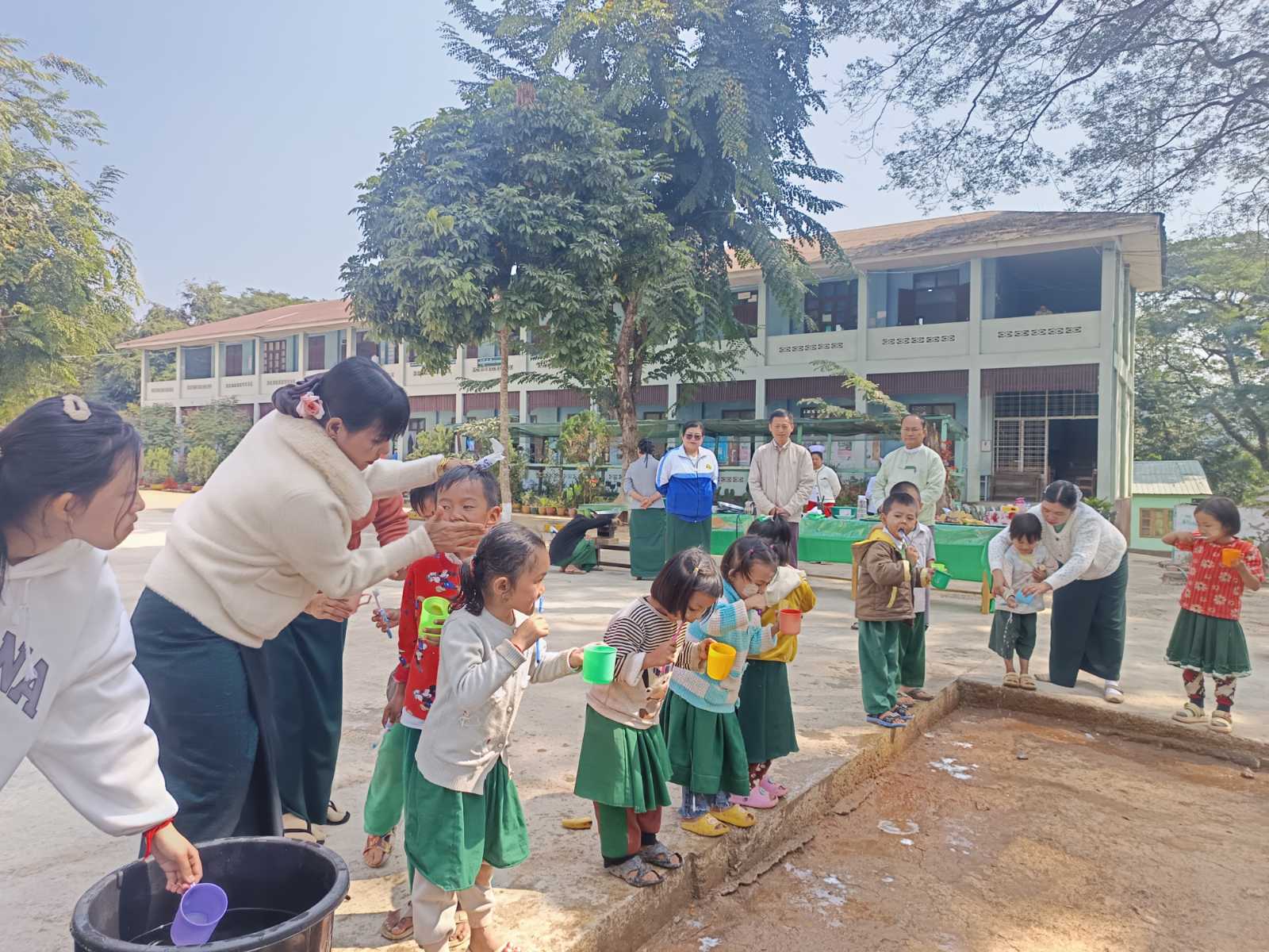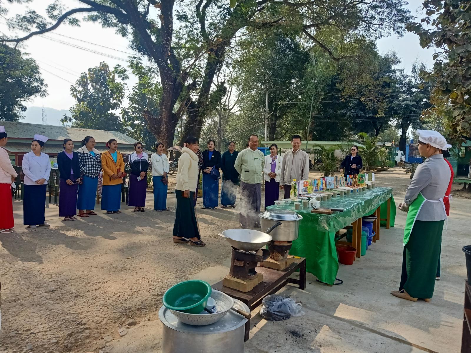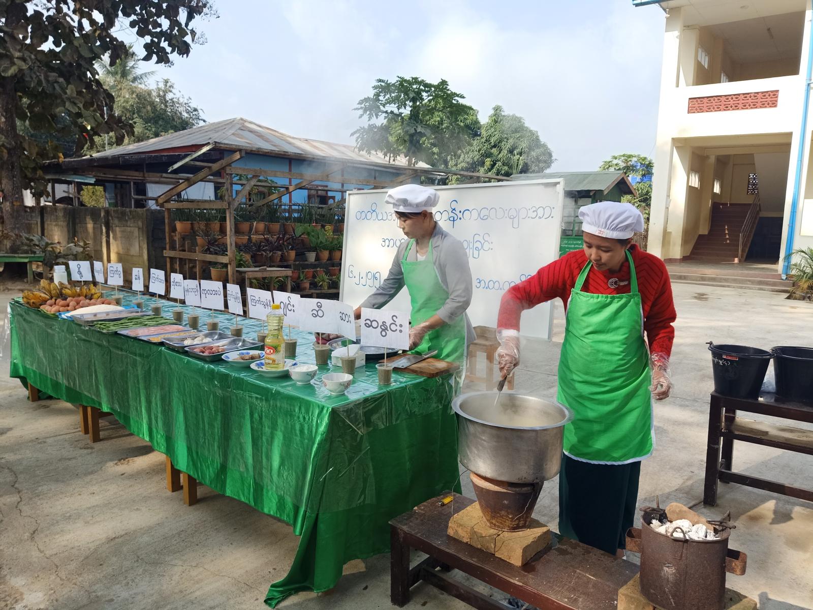 ထိုသို့ဆောင်ရွက်ရာတွင် မြို့နယ်အုပ်ချုပ်ရေးမှူး ဦးအောင်ဝင်း၊ မြို့နယ်ပြည်သူ့ကျန်းမာရေးဦးစီးဌာနမှ မြို့နယ်ဆရာဝန်ကြီး ဒေါက်တာထိန်လင်းနှင့် ဝန်ထမ်းများ၊ မြို့နယ်ပညာရေးမှူး ဒေါ်နန်းဟွမ်နွမ်းနှင့် ပညာရေးဌာနမှ တာဝန်ရှိသူများ၊ မြို့နယ်ကြက်ခြေနီအသင်း၊ မြို့နယ်အမျိုးသမီးရေးရာအဖွဲ့နှင့် မြို့နယ်မိခင်နှင့်ကလေးစောင့်ရှောက်ရေးအသင်းတို့က အခြေခံပညာ အထက်တန်းကျောင်းရှိ KG ကျောင်းသား၊ ကျောင်းသူများအတွက် အာဟာရချက်ပြုတ်နေမှုနှင့် အာဟာရကျွေးမွေးခြင်းတို့ကို လှည့်လည်ကြည့်ရှုအားပေးခြင်း၊ အာဟာရကျန်းမာရေးအကြောင်း အသိပညာပေး ပြောကြားခြင်းတို့ဖြင့် ဆောင်ရွက်ခဲ့ကြကြောင်း သိရသည်။