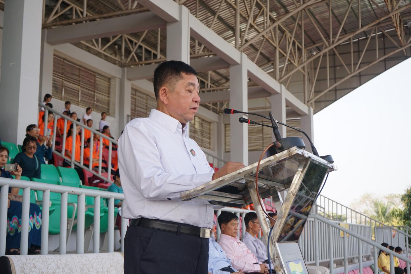 ယင်းနောက် ပြည်နယ်ဝန်ကြီးချုပ် ဦးအောင်ကြည်သန်းက မွန်ပြည်နယ်၏ ပညာရေးဒီဂရီကောလိပ်မှ ဆရာအတတ်ပညာတွေကို သင်ယူနေသည့် ကျောင်းသား၊ ကျောင်းသူများအနေဖြင့် နိုင်ငံ့ဂုဏ်ဆောင်မည့် အဆင့်မီ အားကစားသမားများနှင့် အလားအလာရှိသည့် လူငယ်မျိုးဆက်သစ် အားကစားသမားများ ပေါ်ထွက်လာစေရန်အတွက် ပြည်ထောင်စုနေ့အကြို အားကစားပြိုင်ပွဲများ ကျင်းပပြုလုပ်ပေးရခြင်းဖြစ်ပါကြောင်း၊ အားကစားသမား လူငယ်မောင်မယ်များအနေဖြင့် ထူးချွန်ထက်မြက်သည့် အားကစားသမားကောင်းများဖြစ်လာစေရေး မဆုတ်မနစ်သော ဇွဲလုံ့လဝီရိယများဖြင့် ကြိုးပမ်းပါဝင် ယှဉ်ပြိုင်ကြစေလိုကြောင်းဖြင့် အမှာစကားပြောကြားခဲ့သည်။
