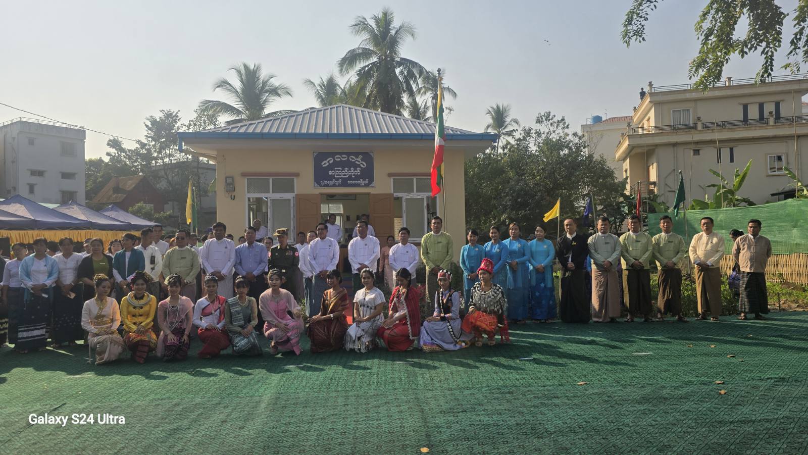 (၇၈) နှစ်မြောက် ပြည်ထောင်စုနေ့ကို ကြိုဆိုဂုဏ်ပြုသောအားဖြင့် ရန်ကုန်တိုင်းဒေသကြီး အစိုးရအဖွဲ့ ဝန်ကြီးချုပ်ဦးစိုးသိန်းနှင့် အစိုးရအဖွဲ့ဝင်ဝန်ကြီးများသည် ဗိုလ်တထောင်ခရိုင်၊ သာကေတမြို့နယ်၊ ၇/ အရှေ့ရပ်ကွက်ရှိ မြန်မာနိုင်ငံစာကြည့်တိုက်များ ဖွံ့ဖြိုးတိုးတက်ရေးပူးပေါင်းဆောင်ရွက်မှု ကော်မတီရန်ပုံငွေဖြင့် အသစ်တည်ဆောက်ခဲ့သည့် အလင်္ကာစာကြည့်တိုက်ကို ယမန်နေ့နံနက် (၉) နာရီချိန်က ဖွင့်လှစ်ခဲ့ရာ ရန်ကုန်တိုင်းဒေသကြီး အစိုးရအဖွဲ့ဝန်ကြီးချုပ်နှင့် ဝန်ကြီးများ၊ တိုင်းအဆင့် ဌာနဆိုင်ရာတာဝန်ရှိသူများ၊ ဗိုလ်တထောင်ခရိုင် စီမံအုပ်ချုပ်ရေးအဖွဲ့ဥက္ကဋ္ဌနှင့် အဖွဲ့ဝင်များ၊ မြို့နယ်စီမံအုပ်ချုပ်ရေးအဖွဲ့ဥက္ကဋ္ဌများနှင့် အဖွဲ့ဝင်များ၊ ခရိုင်နှင့် မြို့နယ်အဆင့် ဌာနဆိုင်ရာ တာဝန်ရှိသူများ၊ အလှူရှင်များ၊ ရပ်မိရပ်ဖများ၊ ပြည်သူများ၊ ကျောင်းသား၊ ကျောင်းသူများ တက်ရောက်ခဲ့ကြောင်း သိရှိရသည်။