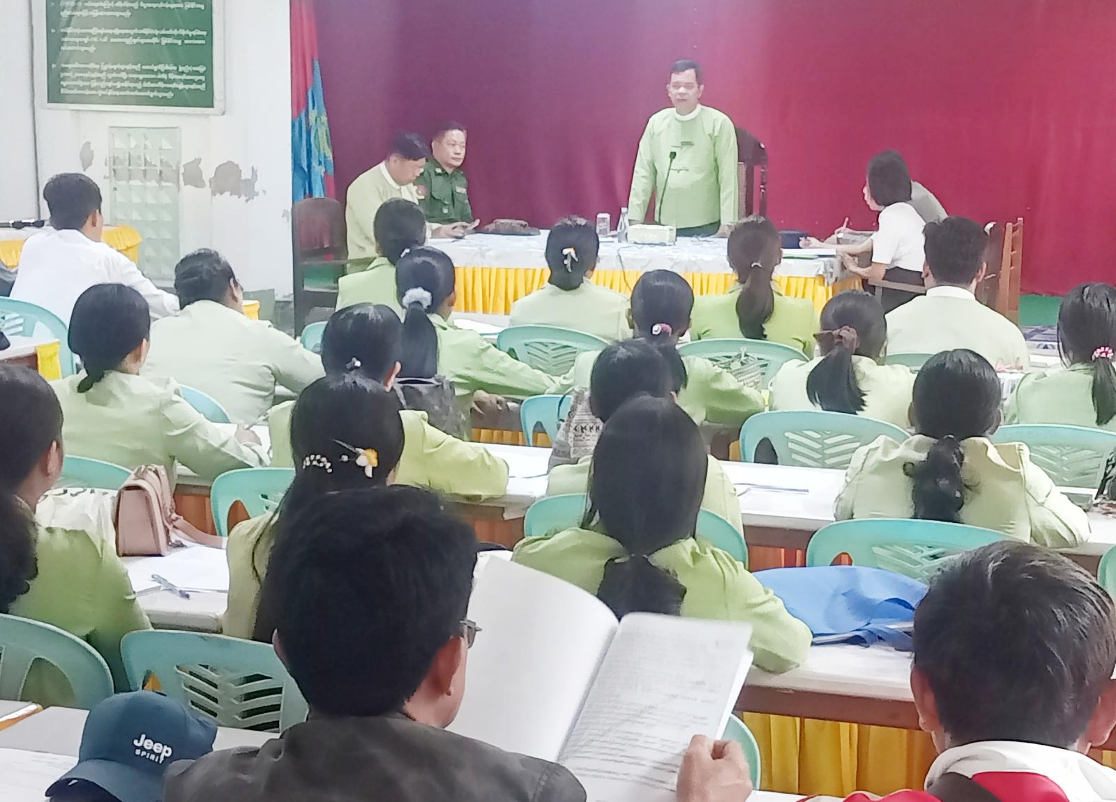 ပဲခူးတိုင်းဒေသကြီး၊ နတ်တလင်းခရိုင်၊ ပေါင်းတည်မြို့နယ်၌ ယမန်နေ့ နံနက်ပိုင်းက ပြည်သူ့စစ်မှုထမ်းဥပဒေနှင့် နည်းဥပဒေအကြောင်း အသိပညာပေးရှင်းလင်းပွဲကို မြို့နယ်အထွေထွေအုပ်ချုပ်ရေးဦးစီးဌာန၊ နဝရတ်ခန်းမတွင် ကျင်းပပြုလုပ်သည်။