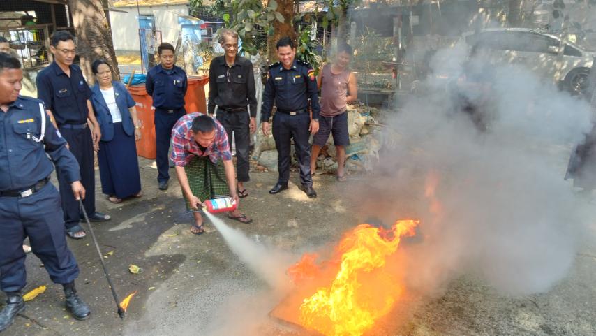 အဆိုပါအခမ်းအနားတွင် ကျောက်တံတားခရိုင်၊ မီးသတ်ဒုဦးစီးမှူး ဦးရန်မျိုးအောင် ဦးဆောင်သော တပ်ဖွဲ့၀င်များနှင့် ကျောက်တံတားခရိုင်၊ စည်ပင်သာယာဈေးများရုံးမှ တာ၀န်ခံဌာနစုမှူး ဒေါ်ကြည်ကြည်လွင်တို့ ဦးဆောင်၍ မီးသတ်ဆေးဗူး၊ အပေါ့စားမီးသတ်စက်တို့ဖြင့် မီးလောင်မှုဖြစ်ပွားလျှင် လက်တွေ့မီးငြိမ်းရေးကို သရုပ်ပြဆောင်ရွက်ခဲ့ကြသည်။