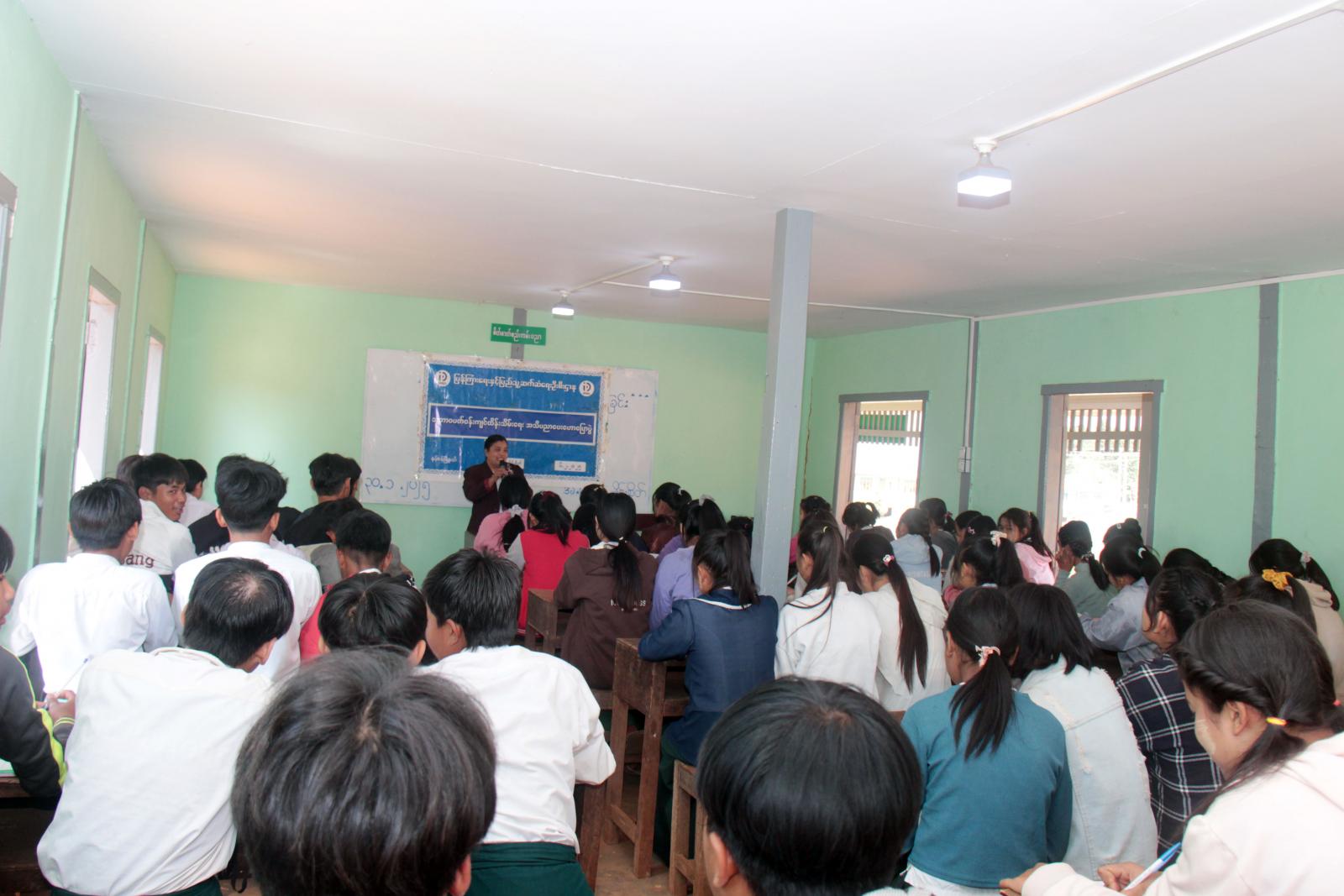 ဆက်လက်၍ မြို့နယ်အားကစားနှင့်ကာယပညာဦးစီးဌာနမှ ဦးစီးအရာရှိ ဦးအောင်ကိုကိုက “လူငယ်နှင့်ခေါင်းဆောင်မှု၊ လူငယ်နှင့်အားကစား၊ အားကစားနှင့် ကျန်းမာရေး” စသည့်ခေါင်းစဉ်များဖြင့် အသိပညာပေးဟောပြောခဲ့ပြီး ကျောင်းသား၊ ကျောင်းသူများအတွက် အားကစားပစ္စည်းများပေးအပ်ခဲ့ရာ ကျောင်းအုပ်ဆရာမကြီး ဒေါ်သူဇာခိုင်က လက်ခံရယူခဲ့သည်။