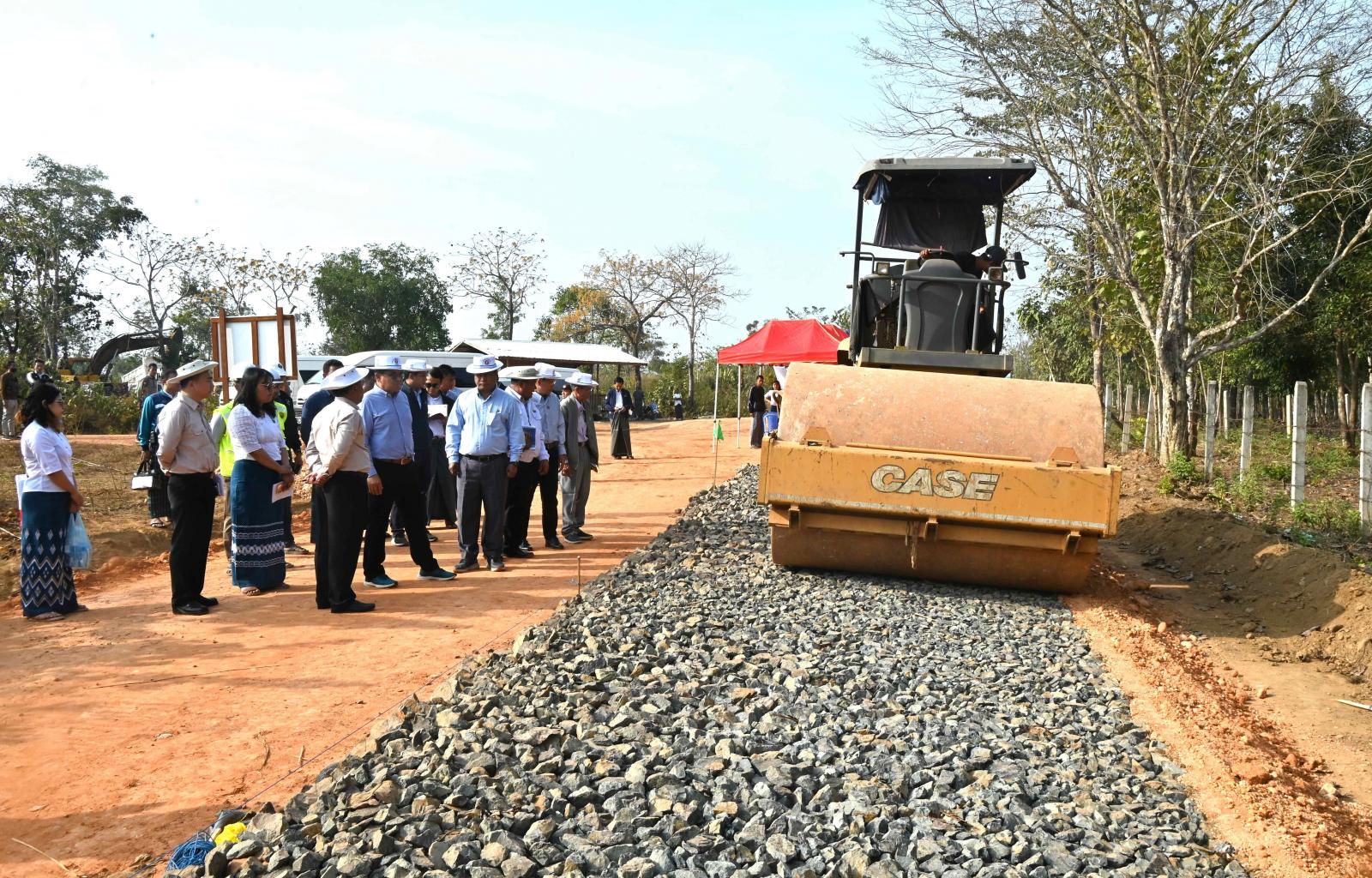 ထိုနောက် အဆိုပါမြေဧရိယာအတွင်း ၂၀၂၄-၂၀၂၅ ဘဏ္ဍာရေးနှစ်ရန်ပုံငွေဖြင့် ဆောင်ရွက်လျက်ရှိသည့် အား/ကာသိပ္ပံပတ်လမ်း ကျောက်ချောလမ်းခင်းခြင်းလုပ်ငန်း (၁ ဒဿမ ၉) ကီလိုမီတာ ဆောင်ရွက်နေမှု၊ ဇခုန်လမ်း အပိုင်း (၂) ကျောက်ချောလမ်း (၂ ဒဿမ ၀၄) ကီလိုမီတာ ဆောင်ရွက်နေမှု၊ အဆိုပါ လမ်းပိုင်းအတွင်း ကွန်ကရစ်ရေကျော်တံတား တည်ဆောက်နေမှု အခြေအနေများ၊ ကျေးရွာပိုင်မြေအဖြစ် အစားထိုးပြန်လည်ချထားပေးမည့် မြေဧရိယာရှင်းလင်းပြီးစီးမှု၊ လမ်းအကျယ်သတ်မှတ်၍ ကျောက်ချောလမ်းဆောင်ရွက်သွားမည့် အခြေအနေများကို လှည့်လည်ကြည့်ရှုစစ်ဆေးခဲ့ကြကြောင်း သိရသည်။