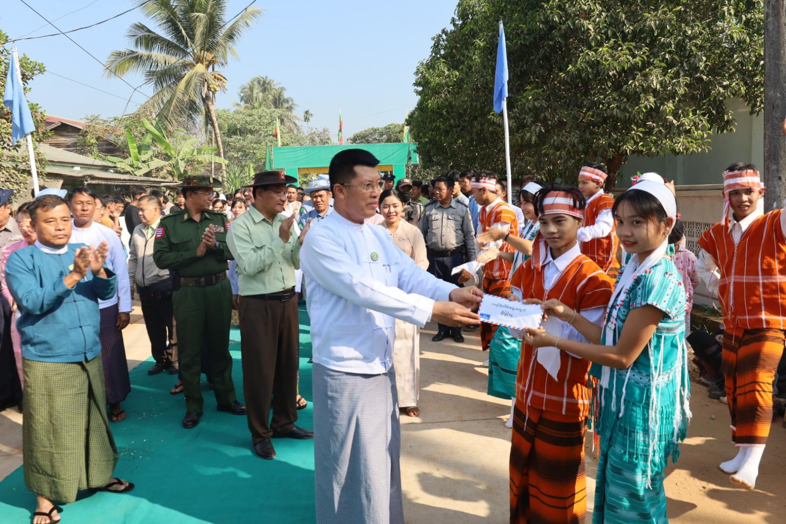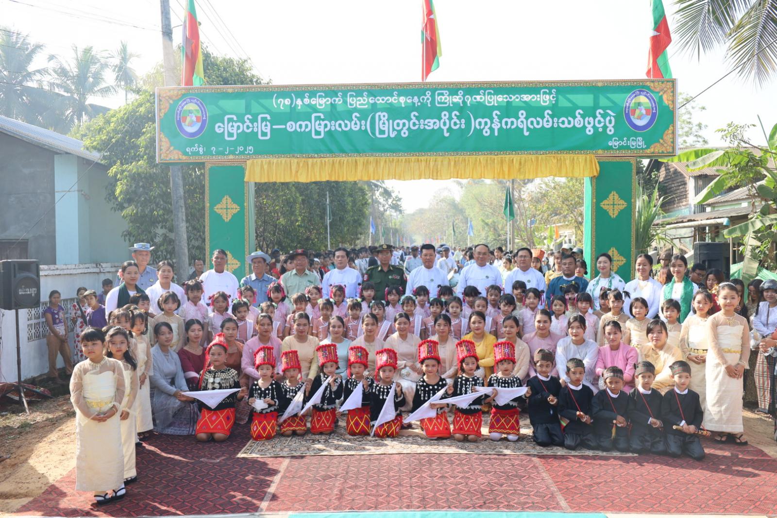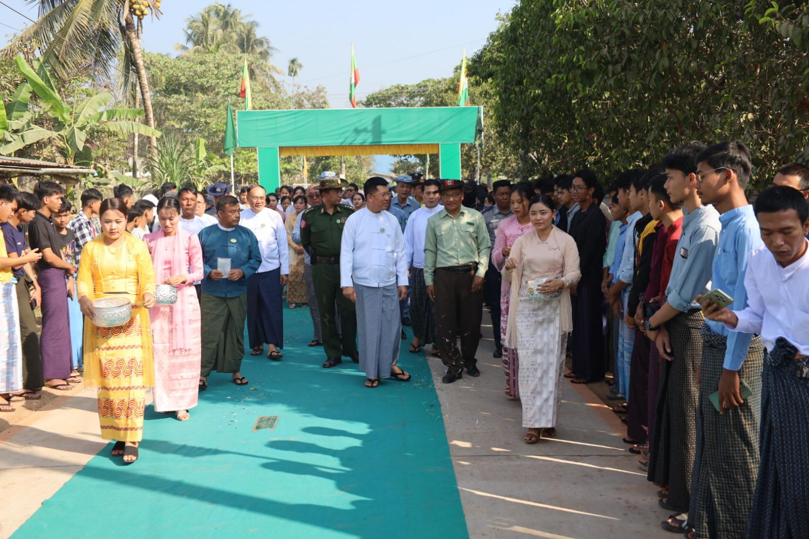 အခမ်းအနားတွင် ဧရာဝတီတိုင်းဒေသကြီးအစိုးရအဖွဲ့ ဝန်ကြီးချုပ် ဦးတင်မောင်ဝင်း၊ လုံခြုံရေးနှင့်နယ်စပ်ရေးရာဝန်ကြီး ဗိုလ်မှူးကြီးမိုးမင်းနိုင်၊ လူမှုရေးရာဝန်ကြီး ဦးခင်မောင်ကြည်၊ တိုင်းရင်းသားရေးရာဝန်ကြီး ဥိးစောလင်းခယ်နှင့် မြို့မိမြို့ဖ ဦးဇာနည်တင့်တို့က ကွန်ကရစ်လမ်းသစ်အား ဖဲကြိုးဖြတ် ဖွင့်လှစ်ပေးခဲ့ပြီး ဧရာဝတီတိုင်းဒေသကြီး ဝန်ကြီးချုပ် ဦးတင်မောင်ဝင်းထံသို့ လမ်းဖွင့်ပွဲ အထိမ်းအမှတ် လက်ဆောင်အား မြောင်းမြမြို့နယ် စည်ပင်သာယာရေးကော်မတီဥက္ကဋ္ဌ ဦးအောင်တင်ထွန်းက ပေးအပ်ခဲ့ကြောင်း သိရသည်။ ထို့နောက် ဧရာဝတီတိုင်းဒေသကြီး အစိုးရအဖွဲ့ဝန်ကြီးချုပ်နှင့် အဖွဲ့ဝင်များသည် ကွန်ကရစ်လမ်းသစ်အား လှည့်လည်ကြည့်ရှုခဲ့ကြောင်း သိရသည်။