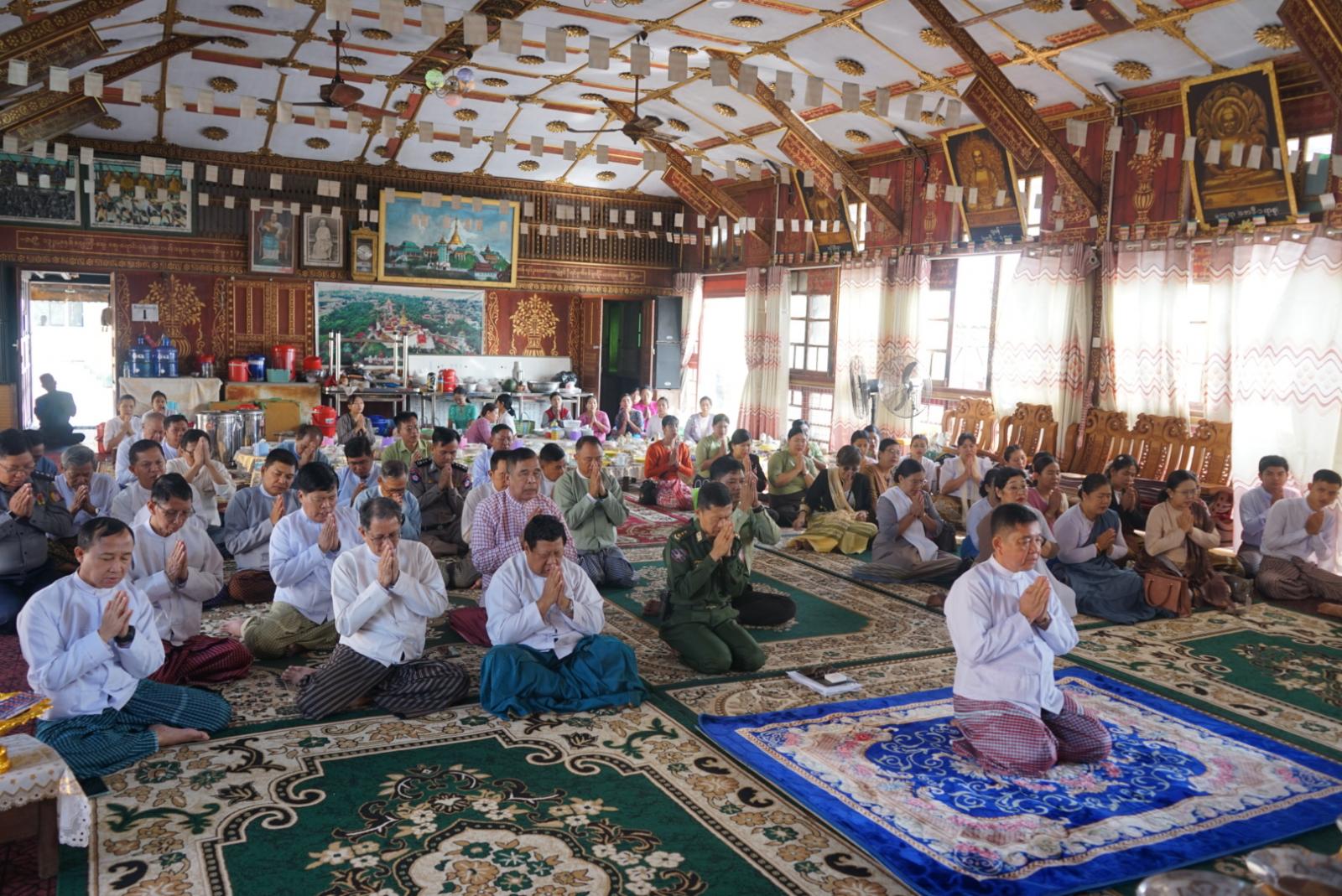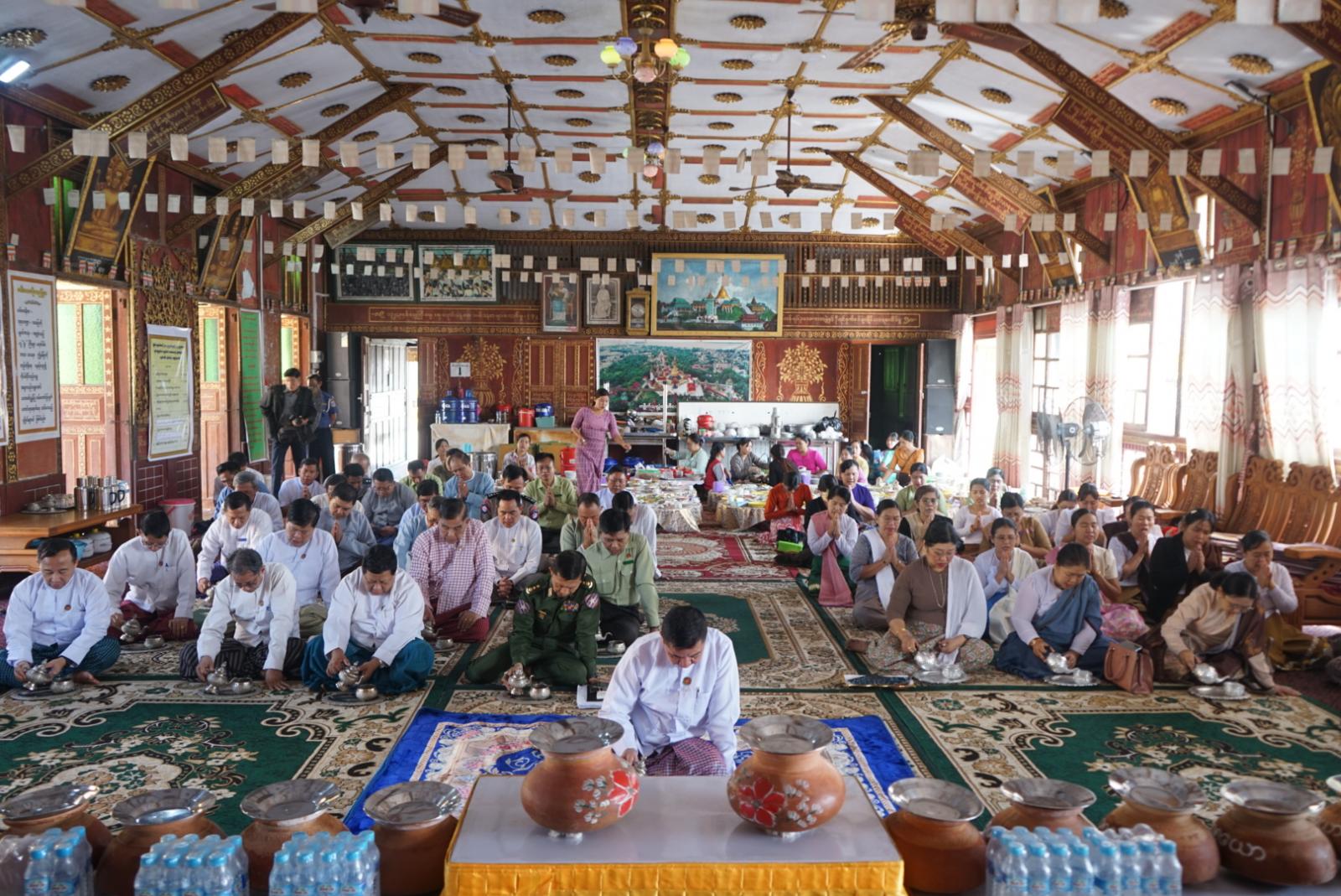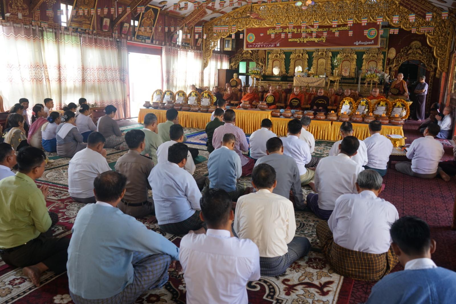 ထို့နောက် ဆရာတော်၊ သံဃာတော်အရှင်သူမြတ်များထံ ပြည်နယ်ဝန်ကြီးချုပ်၊ ပြည်နယ်တရား လွှတ်တော်တရားသူကြီးချုပ်နှင့် ပြည်နယ်ဝန်ကြီးများက လှူဖွယ်ဝတ္ထုပစ္စည်းများ ဆက်ကပ် လှူဒါန်းခဲ့ကြပြီး မော်လမြိုင်မြို့၊ လှိုင်ရပ်ကွက်၊ အတုလရန်အောင်ကျောင်းတိုက် (နိုင်ငံတော် သံဃမဟာနာယကအဖွဲ့) အဖွဲ့ဝင်ဆရာတော် ဘဒ္ဒန္တကောသလ္လ၊ (အဂ္ဂမဟာပဏ္ဍိတ)ထံမှ အနုမောဒနာတရား နာယူကြည်ညို၍ လှူဒါန်းမှုအစုစုတို့အတွက် ရေစက်သွန်းချအမျှ ပေးဝေခဲ့ကြကာ အခမ်းအနားကို “ဗုဒ္ဓသာသနံစိရံတိဋ္ဌတု သုံးကြိမ်ရွတ်ဆို ဆုတောင်းကာ ဆရာတော်သံဃာတော်များအား နေ့ဆွမ်းဆက်ကပ်လှူဒါန်းခဲ့ကြောင်း သိရသည်။