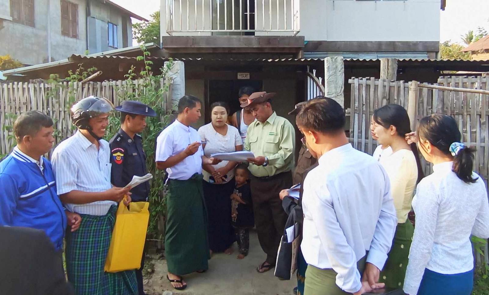 ထိုသို့ ကွင်းဆင်းစစ်ဆေးခြင်းကို မြို့နယ်(Working Group)မြေပြင်ကွင်းဆင်းစာရင်းကောက်ယူရေးကြီးကြပ်မှုကော်မတီအဖွဲ့ဝင်များက ရပ်ကွက်အုပ်ချုပ်ရေးမှ တာဝန်ရှိသူများဖြင့် ပူးပေါင်းကာ မြို့ပေါ်ရပ်ကွက်(၃)ခုရှိ ဒေသနေပြည်သူနေအိမ်များသို့ မြေပြင်လူဦးရေတိုက်ဆိုင်ကွင်းဆင်းစစ်ဆေးဆောင်ရွက်ခြင်းအား မြို့နယ်(Working Group)မြေပြင်ကွင်းဆင်းစာရင်းကောက်ယူရေးကြီးကြပ်မှုကော်မတီဥက္ကဋ္ဌ၊ မြို့နယ်စီမံအုပ်ချုပ်ရေးအဖွဲ့ဥက္ကဋ္ဌ ဦးဝင်းလှိုင်၊ အတွင်းရေးမှူး မြို့နယ်(လ.ဝ.က)မှ လက်ထောက်ညွှန်ကြားရေးမှူး ဦးဇော်မင်း၊ မြို့နယ်ကော်မရှင်အဖွဲ့ခွဲရုံးမှ ဦးစီးအရာရှိ ဒေါ်ဝင်းဝင်းမြင့်နှင့် ကော်မတီအဖွဲ့ဝင်များက ကြည့်ရှုကာ လိုအပ်သည်များ ပေါင်းစပ်ဆောင်ရွက်ပေးခဲ့သည်။