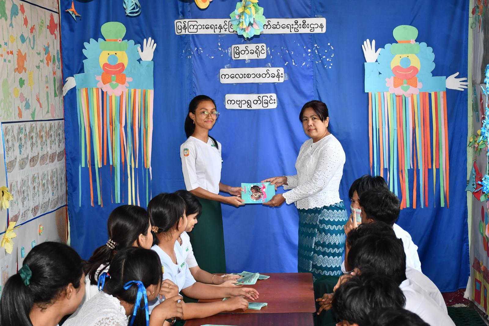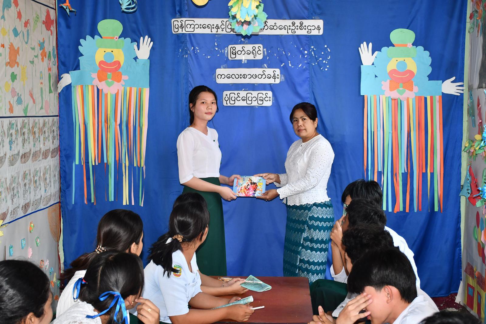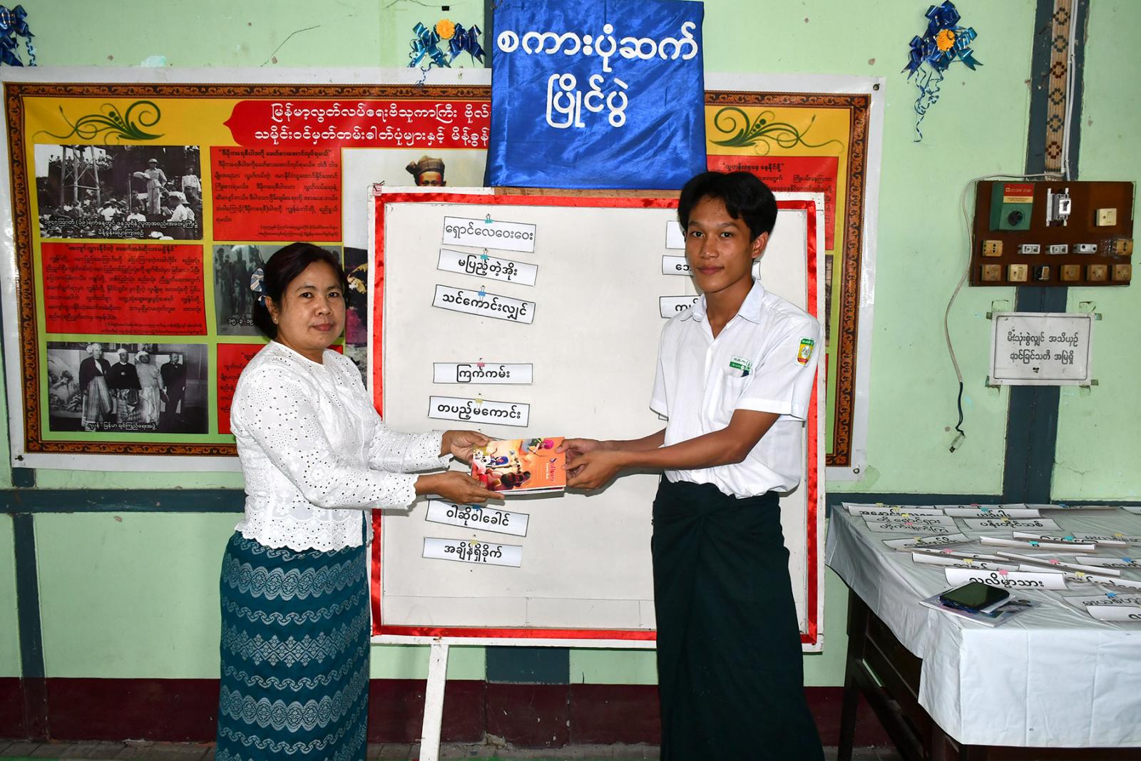 အသိပညာပေး ဟောပြောပွဲအပြီးတွင် ကျောင်းသား၊ ကျောင်းသူများက စကားပုံဆက်ပြိုင်ပွဲကို ပျော်ရွှင်စွာနွှဲပျော်ခဲ့ကြပြီး ကဗျာရွတ်ဆိုခြင်းနှင့် ပုံပြင်ပြောခြင်းများကို ပြုလုပ်ခဲ့ကြ၍ ပါဝင်ခဲ့သူများကို လက်ထောက်ညွှန်ကြားရေးမှူး ဒေါ်မေသန္တာက အမှတ်တရ စာအုပ်များပေးအပ်ကာ ပြန်ကြားရေးနှင့်ပြည်သူ့ဆက်ဆံရေးဦးစီးဌာနမှ ထုတ်ဝေသည့် (၇၈)နှစ်မြောက် ပြည်ထောင်စုနေ့အထိမ်းအမှတ် သတင်း စကားပညာပေးလက်ကမ်းစာစောင်များ ဝေငှပေးခဲ့ကြောင်းသိရသည်။