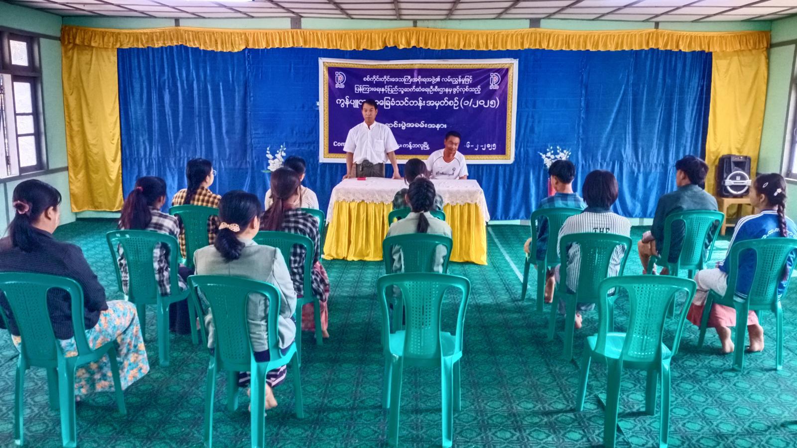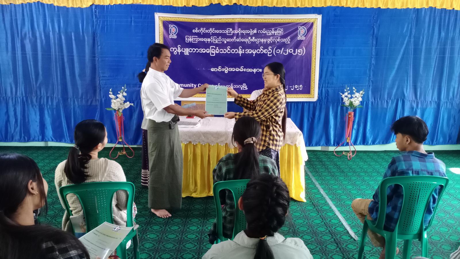 ထို့နောက် တာဝန်ရှိသူများက သင်တန်းသားများအား သင်တန်းဆင်းလက်မှတ်များကို တစ်ဦးချင်းပေးအပ်ခဲ့ကြောင်း၊ အဆိုပါသင်တန်းတွင် သင်တန်းသားသင်တန်းသူ ၁၀ ဦးတက်ရောက်ခဲ့ပြီး သင်တန်းကာလတစ်လတာတွင် Microsoft Word ၊Excel ၊ Power point စသည်ဘာသာရပ်များကို စာတွေ့/လက်တွေ့ သင်ကြားပေးခဲ့ကြောင်း သိရသည်။