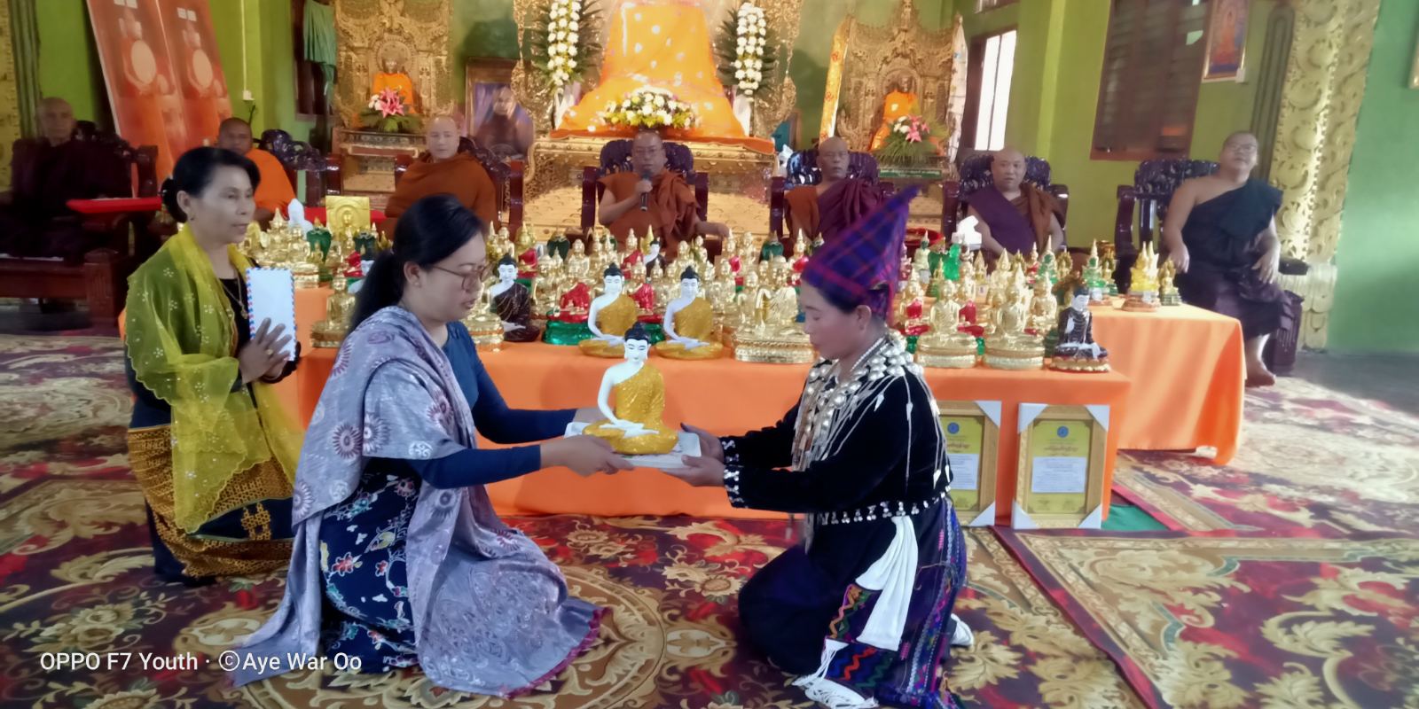 ဆက်လက်၍ ဗုဒ္ဓအဆုံးအမခံယူသည့် အိမ်ထောင်စုများအား ပြန်ကြားရေးနှင့်ပြည်သူ့ဆက်ဆံရေးဦးစီးဌာနမှ ဦးစီးအရာရှိ ဒေါ်ဝါဦးမှ အိမ်ထောင်စု(၁၂၁)စုတို့ကို အိမ်ထောင်စုတစ်စုလျှင် ဗုဒ္ဓရုပ်ပွားဆင်းတုတော်(၁)ဆူနှင့် ငွေ(၅)သောင်းပေးအပ်ခြင်းနှင့် အဆုံးအမခံယူလာကြသူများကိုယ်စား ဒေါ်ဂျာအောင်မှ ဝမ်းမြောက်ပီတိစကား လျှောက်ထားပြောကြားခဲ့ကြောင်း သိရသည်။ တနိုင်းမြို့ သာသနာပြု(ဗဟို)မြို့မကျောင်းနှင့် ချမ်းမြေ့ရွှေပြည်ကျောင်းတိုက်သို့ ကျောင်းဆောင်ဆောက်လုပ်ရေးအတွက် အလှူတော်ငွေကျပ် သိန်း(၅၀)စီ လှူဒါန်းခဲ့သော လက်ထောက်သာသနာပြုလူပုဂ္ဂိုလ် ဦးငွေသိမ်းမင်းနှင့် ဦးငွေသိဏ်းဝင်းတို့အား ဂုဏ်ပြုမှတ်တမ်းလွှာများနှင့် အမှတ်တရလက်ဆောင်များ ပေးအပ်ချီးမြင့်ခဲ့ကြောင်း သိရသည်။ ဆက်လက်၍ တနိုင်းမြို့ သာသနာပြု(ဗဟို)ကျောင်းဆရာတော် မဟာသဒ္ဓမ္မဇောတိကဓဇ ဘဒ္ဒန္တစန္ဒနာလင်္ကာရ အရှင်သူမြတ်က သရဏဂုံနှင့် အဆုံးအမဩဝါဒတရား ချီးမြင့်တော်မူပြီး လှူဒါန်းမှူအစုစုတို့အတွက် ရေစက်ချအမျှဝေကာ "ဗုဒ္ဓသာသနံစိရံတိဠတု"(၃)ကြိမ်ရွတ်ဆို၍ အခမ်းအနား အောင်မြင်စွာ ရုပ်သိမ်းခဲ့ကြောင်း သိရသည်။