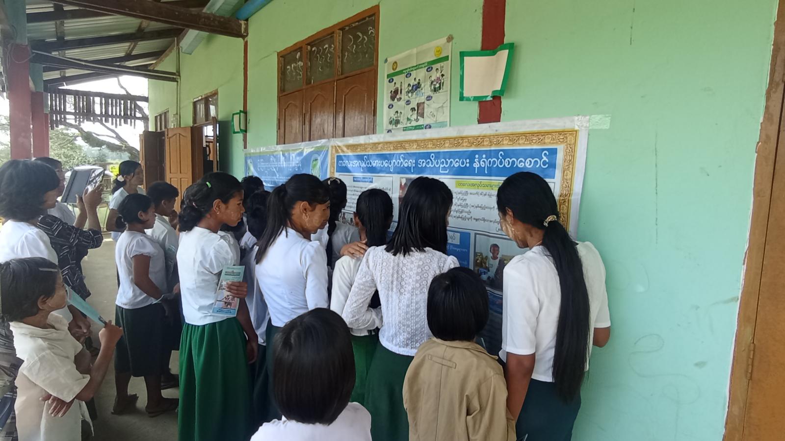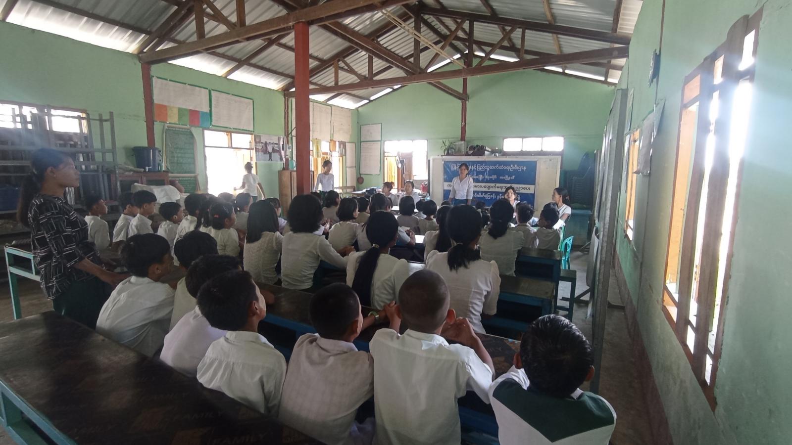 ထို့နောက် ပြန်ကြားရေးနှင့်ပြည်သူ့ဆက်ဆံရေးဦးစီးဌာနမှ ဦးစီးအရာရှိ ဒေါ်သန်းသန်းဝင်းနှင့် ဝန်ထမ်းများက ကျောင်းသား/ကျောင်းသူများအား အသိပညာတိုးပွားစေမည့် ရုပ်ပုံပြဇာတ်နှင့် ရုပ်ပုံပါ ပုံပြင်စာအုပ်များဖြင့် ပုံပြင်ပြောပြခြင်း၊ ကလေးအလုပ်သမားပပျောက်ရေး အသိပညာပေး နံရံကပ်စာစောင်များကိုပြသခဲ့ပြီး၊ ၂၀၂၅ ခုနှစ်၊ ဖေဖော်ဝါရီလ(၁၂)ရက်နေ့တွင် ကျရောက်မည့် ပြည်ထောင်စုနေ့အထိမ်းအမှတ် သတင်းစကားလက်ကမ်းစာစောင်များကို အခမဲ့ဖြန့်ဝေပေးခဲ့ကြောင်း သိရသည်။