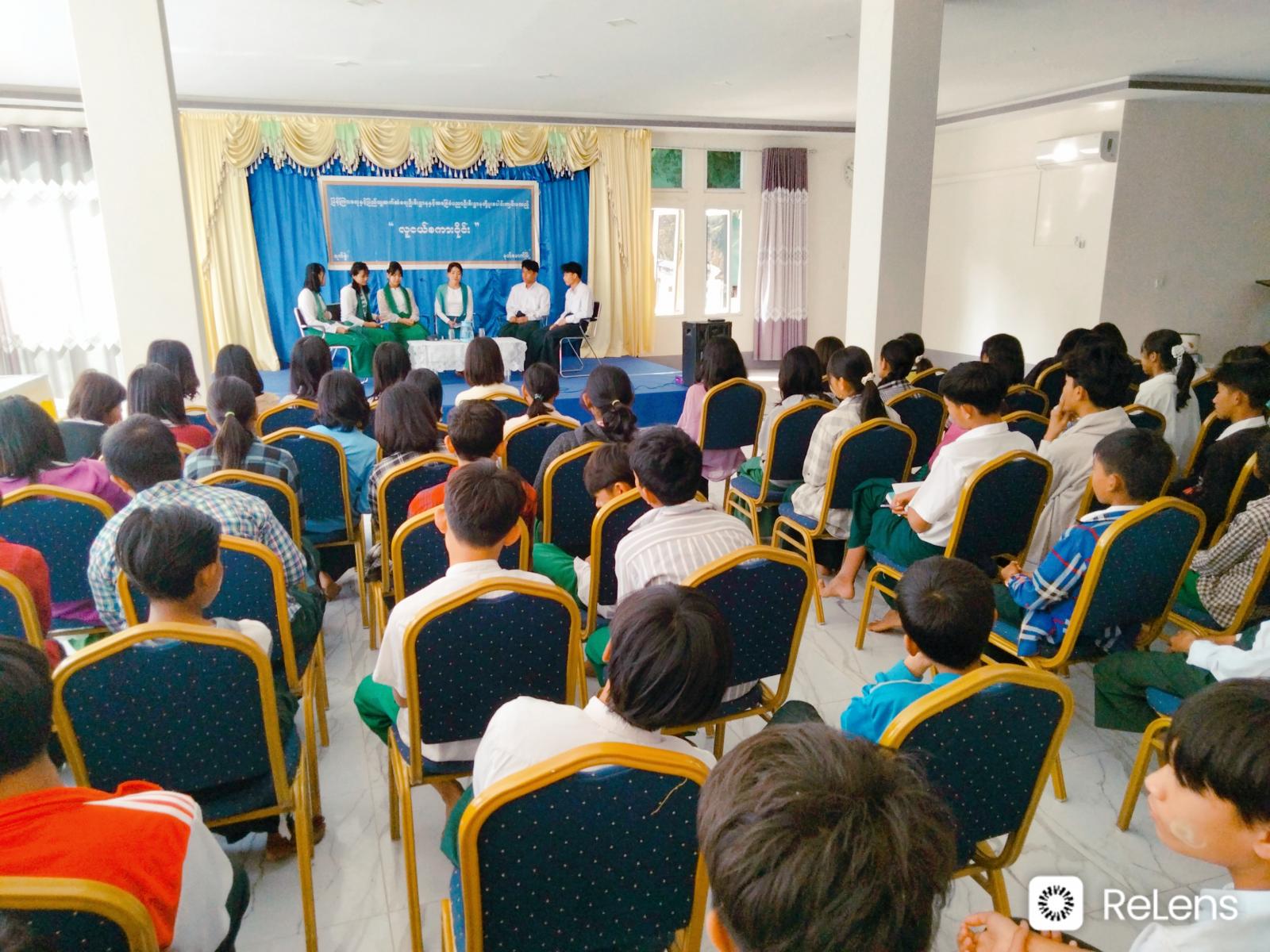 ထို့နောက် လူငယ်စကားဝိုင်းဆွေးနွေးပွဲကို ကျင်းပခဲ့ရာ မြို့နယ်ပြန်ကြားရေးနှင့်ပြည်သူ့ဆက်ဆံရေး ဦးစီးဌာန ဒေါ်သင်းသင်းဝေ(ဒုတိယဦးစီးမှူး)က ဦးဆောင်ဆွေးနွေးသူအဖြစ် ဆောင်ရွက်ပြီး အခြေခံပညာအလယ်တန်း (တမာပင်)မှ ကျောင်းသား/သူများဖြစ်ကြသည့် Grade-9 ကျောင်းသူ မနွေးနွေးလှိုင်က လူငယ်နှင့်စာဖတ်ခြင်း၊ Grade-9 ကျောင်းသား မောင်စိုင်းဝင်းလှိုင်က လူငယ်နှင့်ကြီးပွားရေး၊ Grade-9 ကျောင်းသူ မပန်းရနံ့ချယ်က လူငယ်နှင့်ကျန်းမာရေး၊ Grade-9 ကျောင်းသား မောင်ထက်ဘုန်းပြည့်က လူငယ်နှင့်ပညာရေး၊ Grade-9 ကျောင်းသူ မပြည့်ဖြိုးခိုင်က လူငယ်နှင့်ယဉ်ကျေးမှုတန်ဖိုး ခေါင်းစဉ်များဖြင့်လည်းကောင်း အသီးသီးဆွေးနွေးကြပြီး စကားဝိုင်းဆွေးနွေးပွဲသို့ တက်ရောက်လာကြသည့် ကျောင်းသား/သူများကလည်း အပြန်အလှန် မေးမြန်းဆွေးနွေးခဲ့ကြသည်။