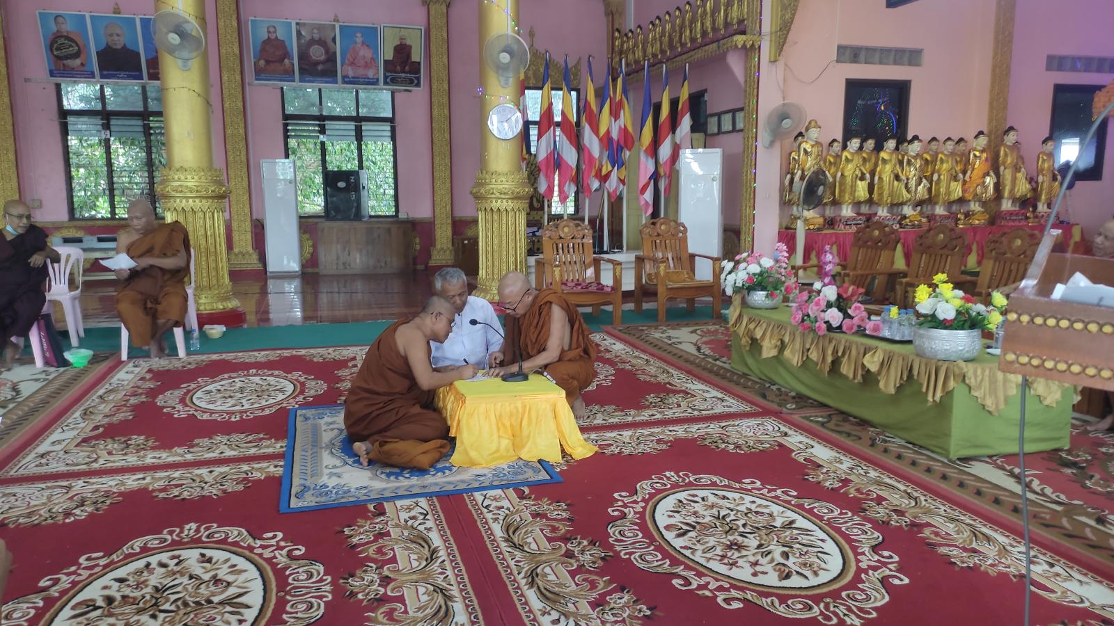 ရှေးဦးစွာ ဘုတ်ပြင်းမြို့နယ်သံဃာ့နာယကအဖွဲ့၊ အဖွဲ့ဝင်များ အနားယူခြင်းဆိုင်ရာ အစည်းအဝေးကို "နမောတဿ" (၃)ကြိမ်ရွတ်ဆို ဘုရားကန်တော့၍ စတင်ကျင်းပခဲ့ပြီး အစည်းအဝေး သဘာပတိဆရာတော် တိုင်း/သံဃနာယကအဖွဲ့ဥက္ကဋ္ဌဆရာတော် ဘဒ္ဒန္တနာရဒ (မော်တောင်ကျောင်းတိုက်၊မြိတ်မြို့)က အစည်းအဝေး ဖွင့်ဩဝါဒကထာ မြွက်ကြားခဲ့သည်။ ယင်းနောက် အခမ်းအနားမှူး ဆရာတော်က မြို့နယ်သံဃာ့နာယကအဖွဲ့၊ အဖွဲ့ဝင်များ အနားယူရမည့်အရေအတွက်ကို ရှင်းလင်းလျှောက်ထား၍ အနားယူရမည့် ဆရာတော်စာရင်းကို ကြေညာခဲ့သည်။ ထို့နောက် အစည်းအဝေး သဘာပတိဆရာတော်က နိဂုံးချုပ်ဩဝါဒကထာ မြွက်ကြားခဲ့ပြီး "ဗုဒ္ဓသာသနံ စိရံတိဋ္ဌတု"သုံးကြိမ်ရွတ်ဆို၍ ပထမပိုင်းအခမ်းအနား ပြီးဆုံးခဲ့သည်။