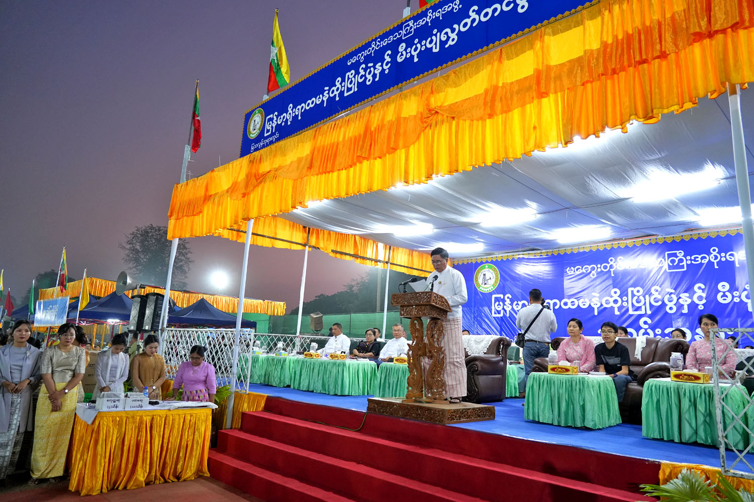 မကွေးတိုင်းဒေသကြီး အစိုးရအဖွဲ့မှ ကြီးမှူးကျင်းပသည့် မြန်မာ့ရိုးရာ ထမနဲထိုးပြိုင်ပွဲနှင့် မီးပုံးပျံလွှတ်တင်ပွဲ အခမ်းအနားကို ဖေဖော်ဝါရီ ၈ ရက်နေ့ မွန်းလွဲ ၃ နာရီက မကွေးမြို့၊ မြသလွန်ဘုရားပွဲတော်ကွင်းပြင်၌ ကျင်းပရာ အခမ်းအနားသို့ မကွေးတိုင်းဒေသကြီးအစိုးရအဖွဲ့ ဝန်ကြီးချုပ် ဦးတင့်လွင်နှင့်ဇနီး၊ မကွေးတပ်နယ်မှ ဗိုလ်ချုပ်သိန်းထွန်းဦး၊ တိုင်းဒေသကြီးအစိုးရ အဖွဲ့ဝင်ဝန်ကြီးများနှင့် ၎င်းတို့၏ဇနီးများ၊ တိုင်းဒေသကြီး တရားသူကြီးချုပ်နှင့် ဥပဒေချုပ်၊ ဌာနဆိုင်ရာတာဝန်ရှိ သူများ၊ ပြိုင်ပွဲဝင်အသင်းများနှင့် ဖိတ်ကြားထားသူများ တက်ရောက်သည်။