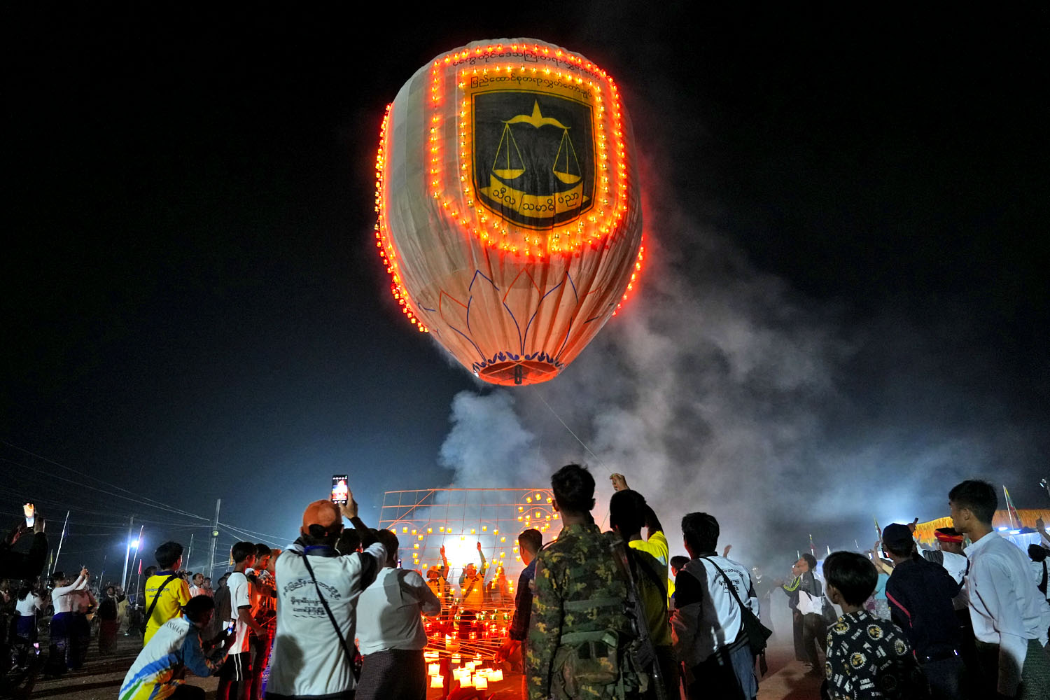 ဆက်လက်၍ မီးပုံးပျံလွှတ်တင်ပွဲ အခမ်းအနားကိုကျင်းပရာ စိန်နပန်မီးပုံပျံ(၄)လုံး၊ ညမီးကြီး မီးပုံးပျံ(၃)လုံးနှင့် မီးပုံပျံငယ်(၃၀၀)လုံးတို့အား မကွေးတိုင်းဒေသကြီးဝန်ကြီးချုပ် ဦးတင့်လွင်နှင့် ဇနီး၊ မကွေးတပ်နယ်မှ ဗိုလ်ချုပ်သိန်းထွန်းဦး၊ တိုင်းဒေသကြီးအစိုးရအဖွဲ့ဝင်ဝန်ကြီးများနှင့် ၎င်းတို့၏ဇနီးများ၊ တိုင်းဒေသကြီး တရားသူကြီးချုပ်နှင့် ဥပဒေချုပ်၊ ဌာနဆိုင်ရာတာဝန်ရှိသူများနှင့် ဧည့်ပရိတ်သတ်များက မီးထွန်းညှိ၍ လွှတ်တင်ကာ၊ ထမနဲထိုးပြိုင်ပွဲနှင့် မီးပုံးပျံလွှတ်တင်ပွဲကို အေးချမ်းပျော်ရွှင်စွာ ဆင်နွှဲခဲ့ကြကြောင်း သိရသည်။
