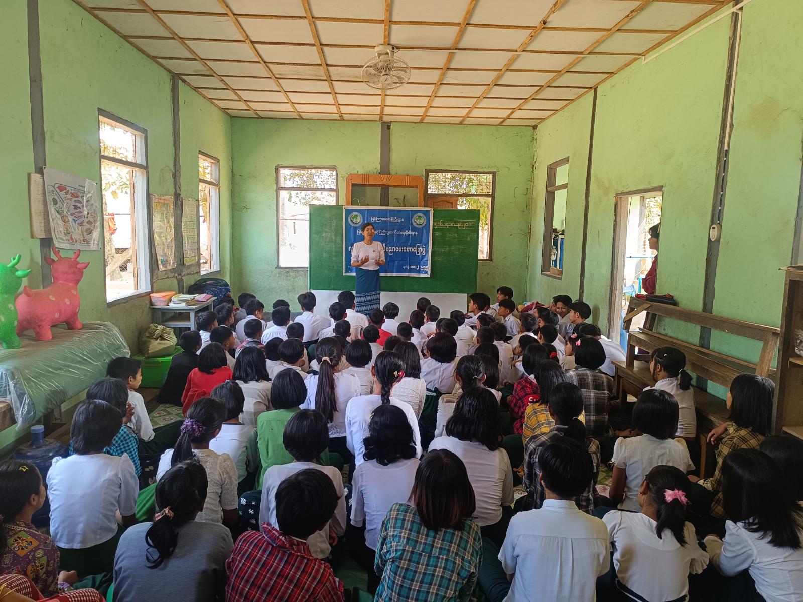 ထို့နောက် ပြန်ကြားရေးနှင့်ပြည်သူ့ဆက်ဆံရေးဦးစီးဌာနမှ ဦးစီးအရာရှိ ဒေါ်နီနီဝင်းနှင့် ဝန်ထမ်းများက ကျောင်းသား/ကျောင်းသူများအား အသိပညာတိုးပွားစေမည့် ရုပ်ပုံပြဇာတ်နှင့် ရုပ်ပုံပါပုံပြင်စာအုပ်များဖြင့် ပုံပြင်ပြောပြခြင်း၊ ကလေးအလုပ်သမားပပျောက်ရေး အသိပညာပေး နံရံကပ်စာစောင်များကို ပြသခဲ့ပြီး၊ ၂၀၂၅ ခုနှစ်၊ ဖေဖော်ဝါရီလ(၁၂)ရက်နေ့တွင် ကျရောက်မည့် ပြည်ထောင်စုနေ့အထိမ်းအမှတ် သတင်းစကားလက်ကမ်းစာစောင်များကို အခမဲ့ဖြန့်ဝေပေးခဲ့ကြောင်း သိရသည်။