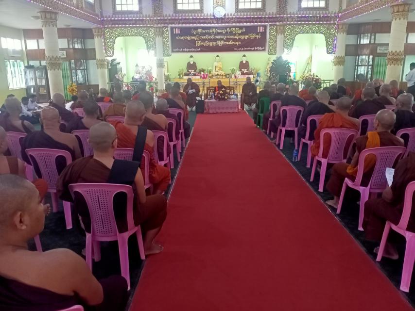အစည်းအဝေးတွင် သဘာပတိဆရာတော် တင်မြှောက်ပြီးနောက် “နမောတဿ” သုံးကြိမ်ရွတ်ဆို၍ အစည်းအဝေးဖွင့်လှစ်ခဲ့သည်။ ထို့နောက် သဘာပတိဆရာတော် ပဲခူးမြို့သပြေကုန်းဘိုးဘွားရိပ်သာဆရာတော် ဘဒ္ဒနမုလိန္တက အစည်းအဝေးဖွင့် သြဝါဒကထာမြွက်ကြားပြီး မြို့နယ်စီမံအုပ်ချုပ်ရေးအဖွဲ့ဥက္ကဋ္ဌ ဦးကျော်ဆန်းဦးက သာသနာရေးဆိုင်ရာများကို လျှောက်ထားခဲ့သည်။