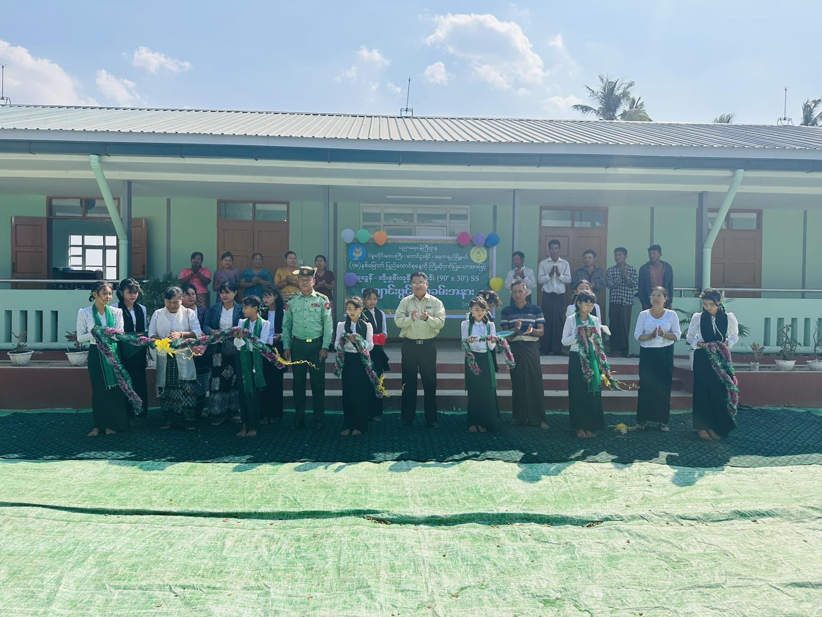 အခမ်းအနားတွင် မြို့နယ်စီမံအုပ်ချုပ်ရေးအဖွဲ့ဥက္ကဋ္ဌ ဦးဥက္ကာသန်း၊ အဖွဲ့ဝင် (၁) ဗိုလ်မှူး သန့်ဇင်ဝေ၊ မြို့နယ်ပညာရေးမှူး ဒေါ်ခင်သက်ဦးနှင့် ကျောင်းအုပ်ဆရာမကြီး ဒေါ်ခင်သိန်းကြည်တို့က အခမ်းအနားအား ဖဲကြိုးဖြတ်ဖွင့်လှစ်ပေးခဲ့သည်။