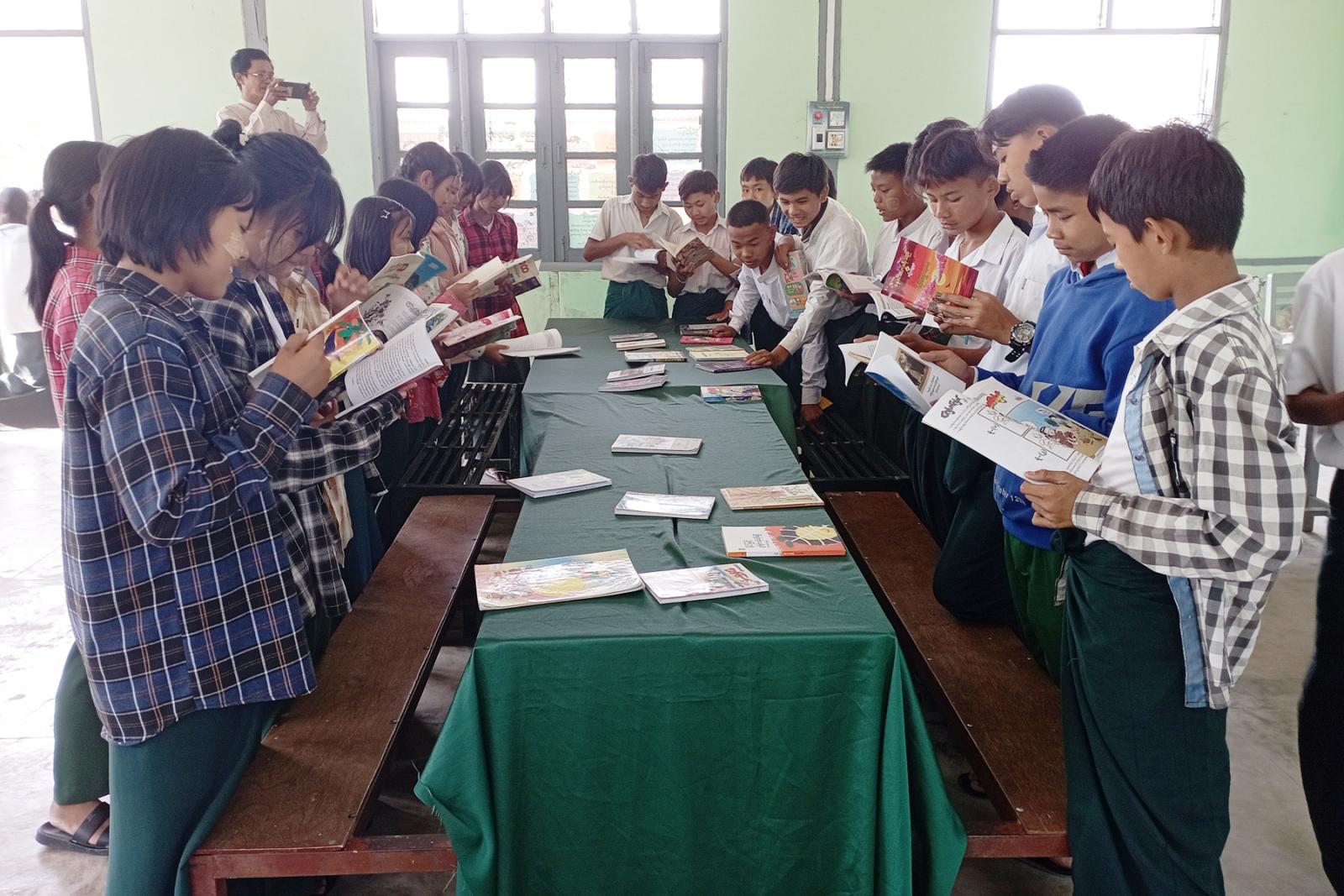 ထို့နောက် မြို့နယ်ပြန်ကြားရေးနှင့်ပြည်သူ့ဆက်ဆံရေးဦးစီးဌာနမှပြသထားသည့် အသိပညာပေး နံရံကပ်စာစောင်များ၊ စာဖတ်ရှိန်မြှင့်တင်ရေးအသိပညာပေး စာအုပ်စာစောင်များကို ကျောင်းသား၊ ကျောင်းသူလေးများက လေ့လာကြည့်ရှုခဲ့ကြကြောင်း သိရသည်။